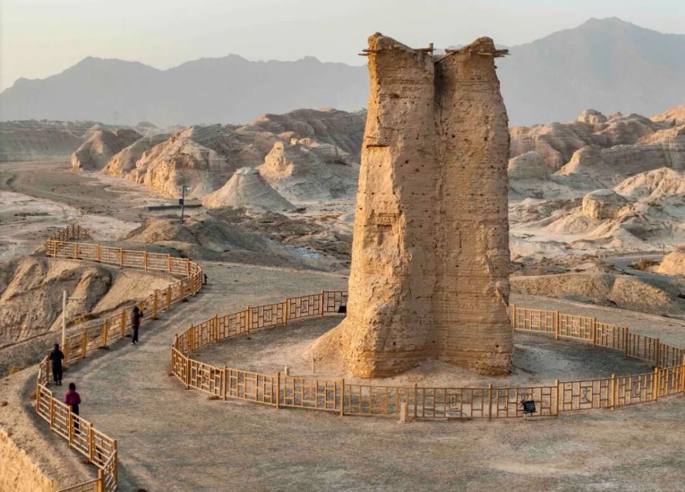 克孜尔尕哈烽燧(无人机照片)。新华社记者 胡虎虎 摄