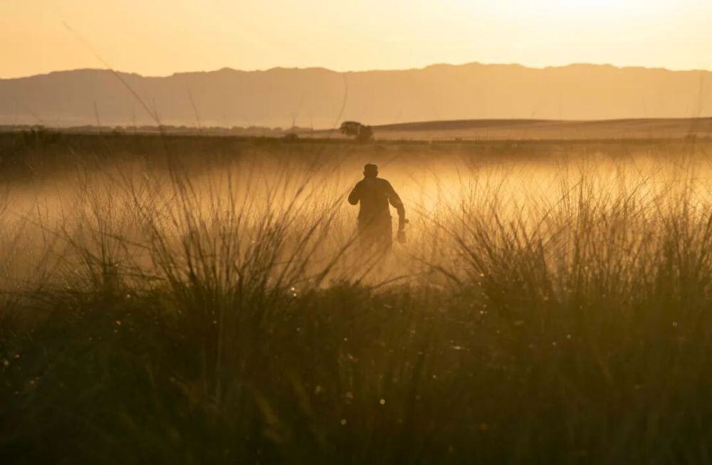 魏德友老人在新疆萨尔布拉克草原上放牧巡边。新华社记者 胡虎虎 摄
