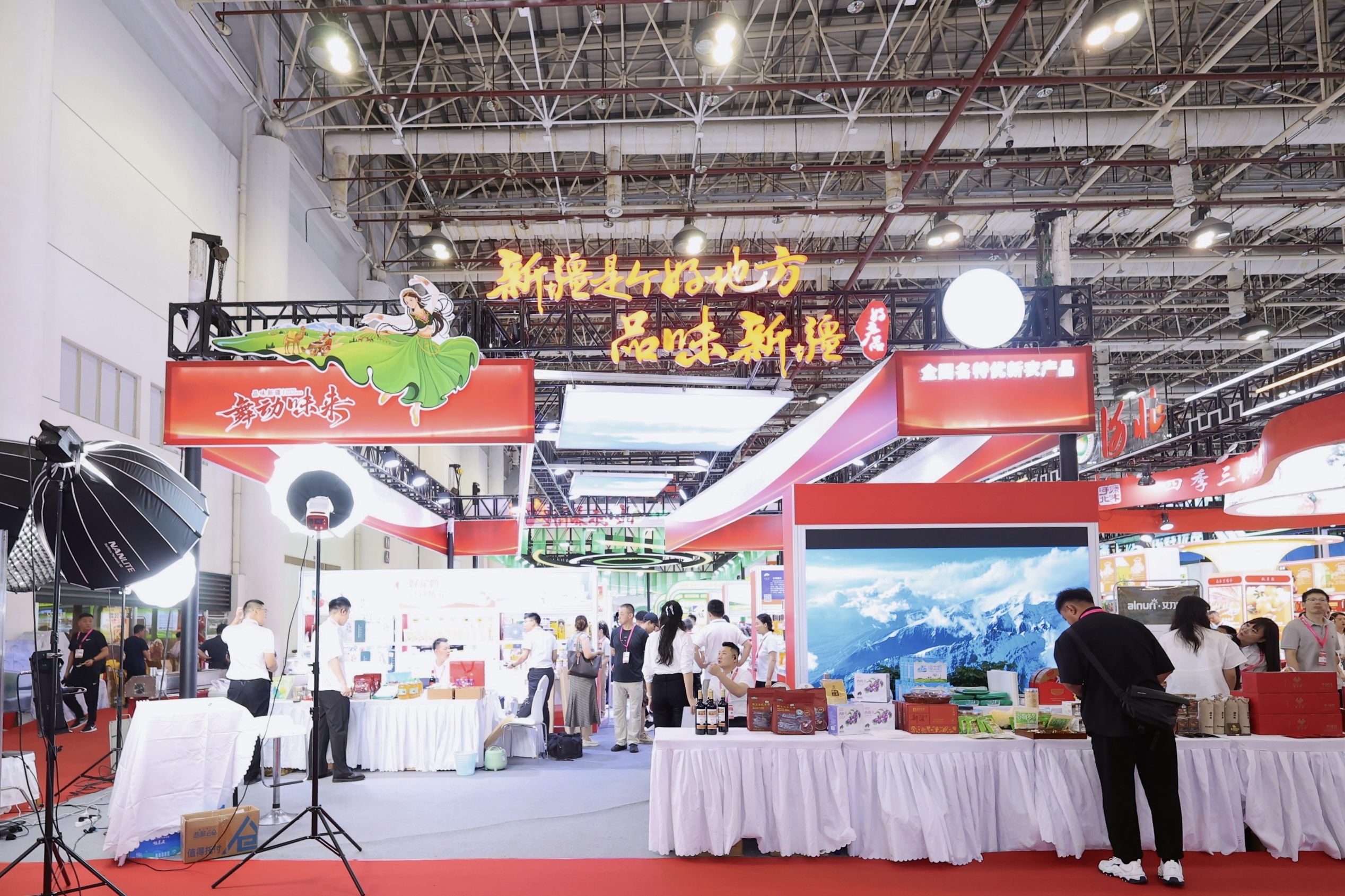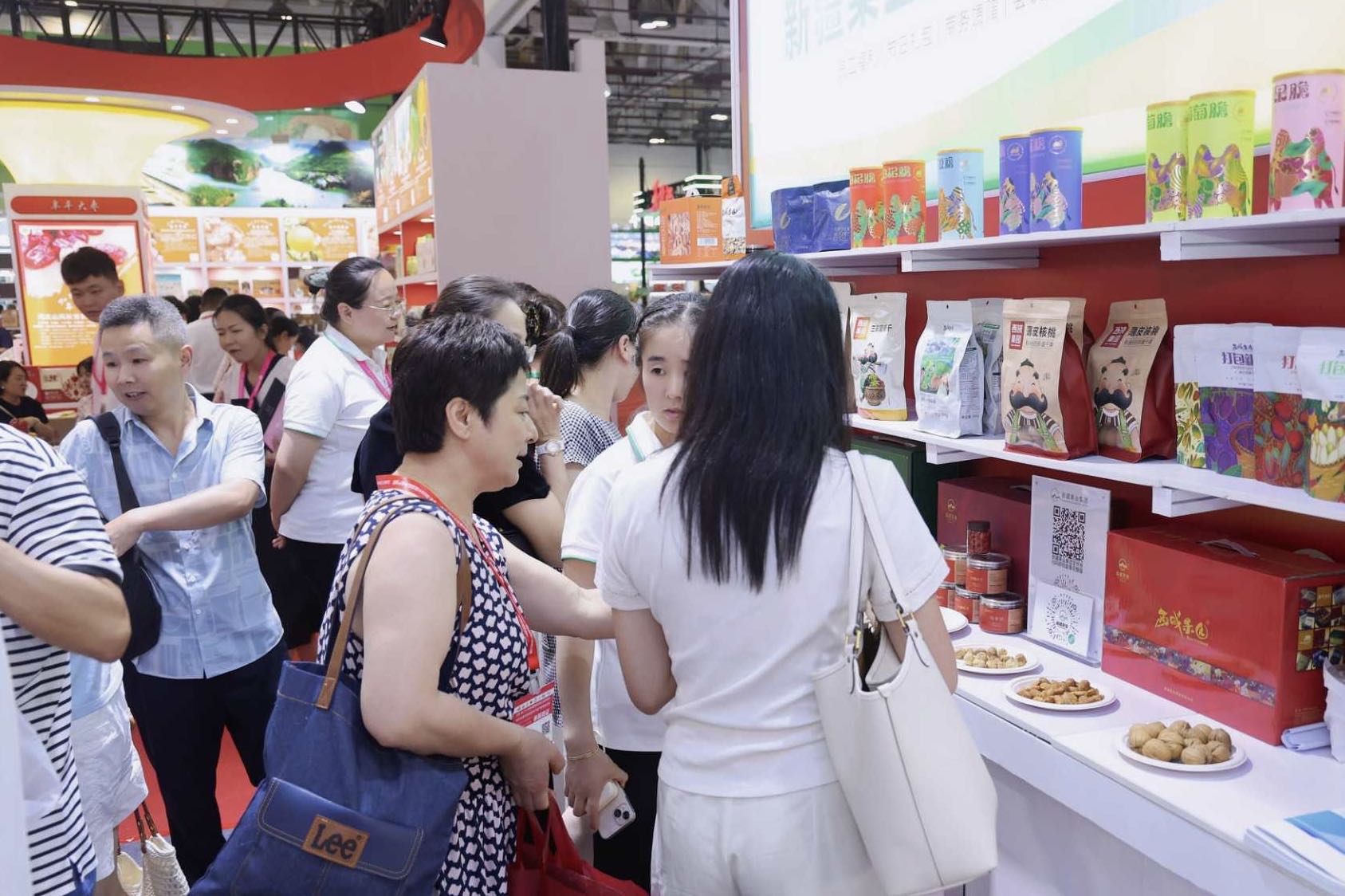 新疆果业集团旗下“西域果园”“阿凡提”等明星品牌强势亮相特色产品展销区。