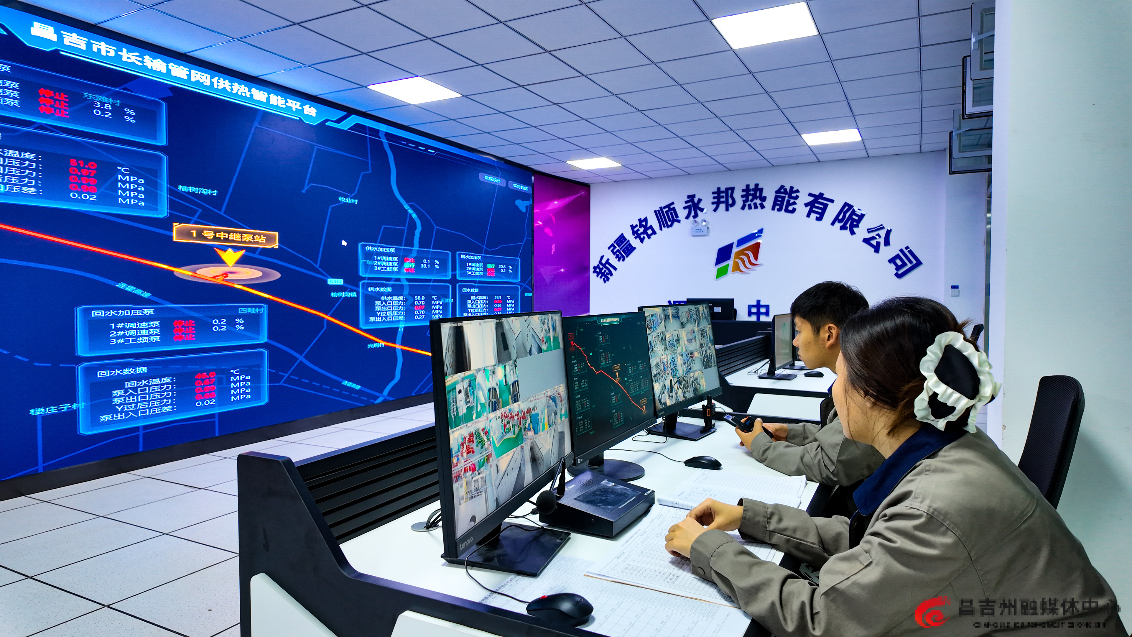新疆铭顺永邦热能有限公司承担着昌吉市城区乌伊路以北、长宁路以西、塔城路以南区域的供热任务,负责44.4公里长输管网、3座泵站和18座换热站的运营,总供热面积达700万平方米。10月2日,记者在该公司生产作业区看到,工作人员正通过监控系统查看温控设备,并仔细检查供热机组。