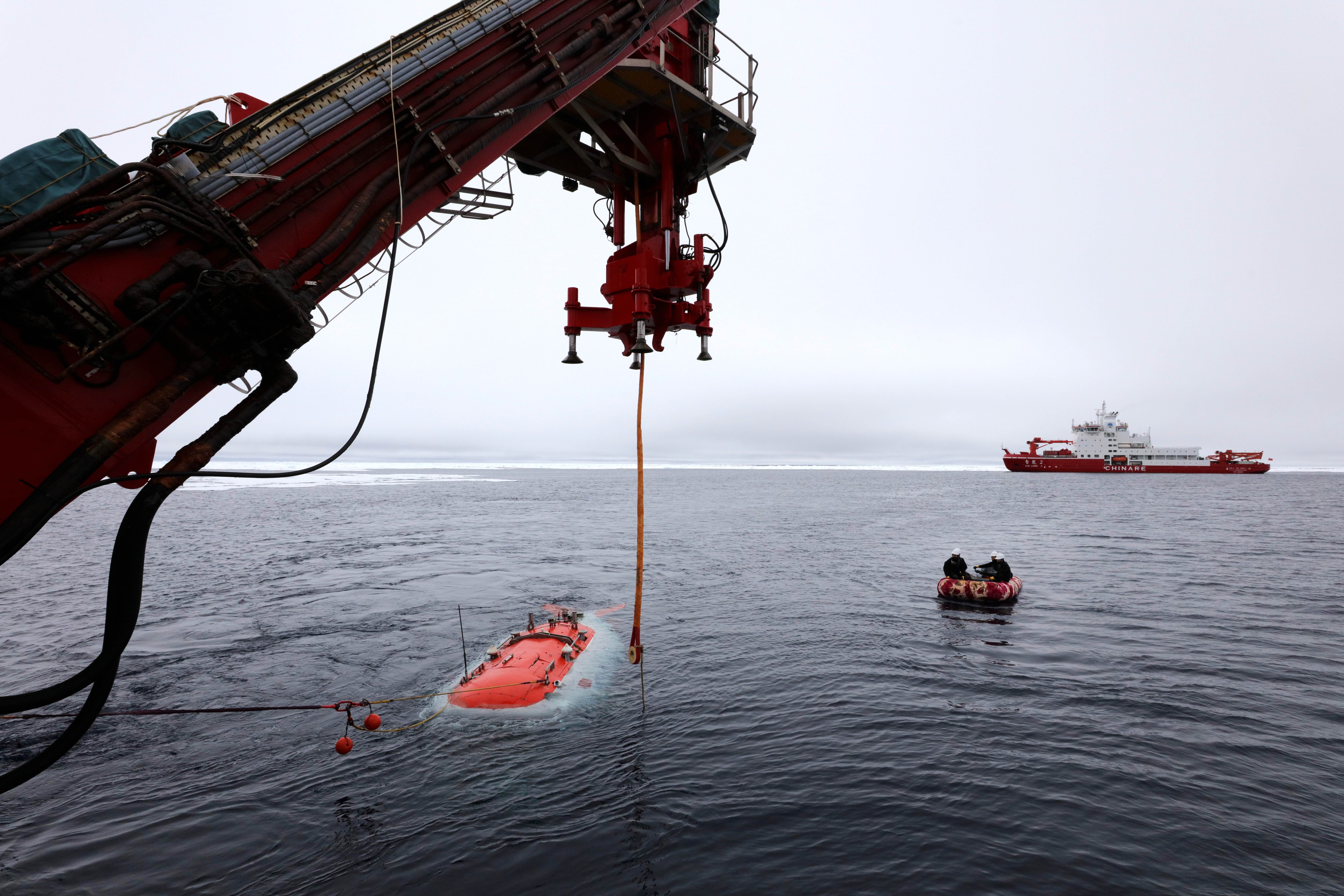 中国大洋92航次第一航段由“深海一号”携“蛟龙”号于2025年7月15日从青岛起航,9月8日返回青岛。在“雪龙2”号极地科考破冰船破冰保障下,本航段在北极海域进行了“蛟龙”号载人深潜、rov调查和ctd(温盐深剖面仪)采水等作业。