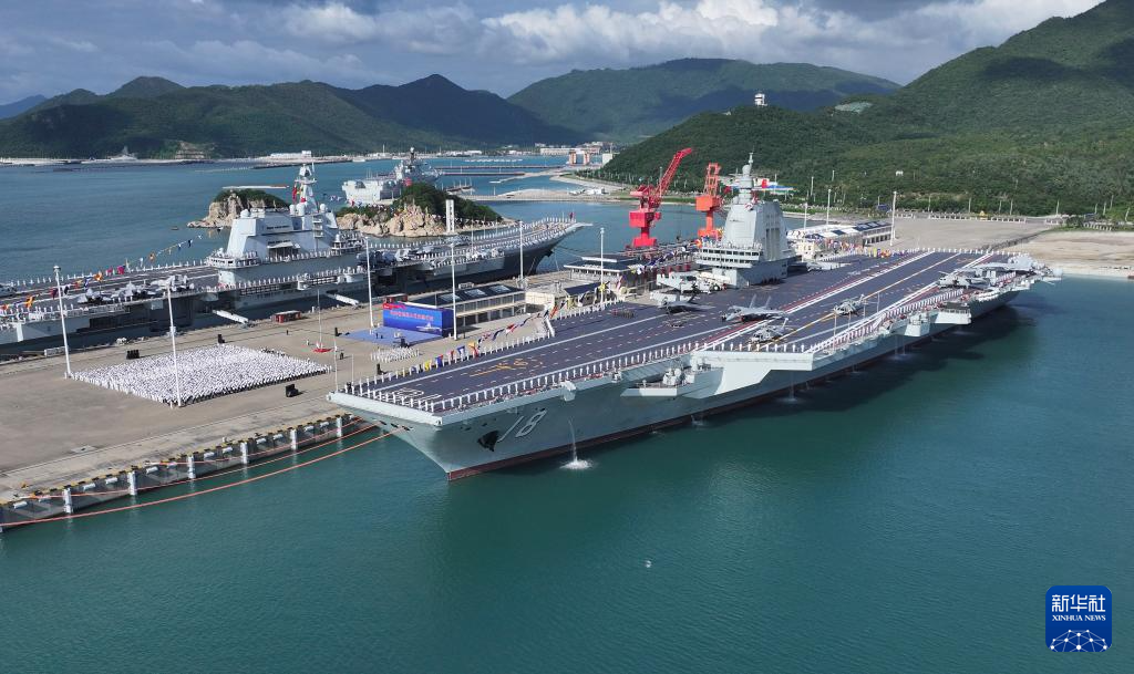 11月5日,我国第一艘电磁弹射型航空母舰福建舰入列授旗仪式在海南三亚某军港举行。新华社记者 李刚 摄