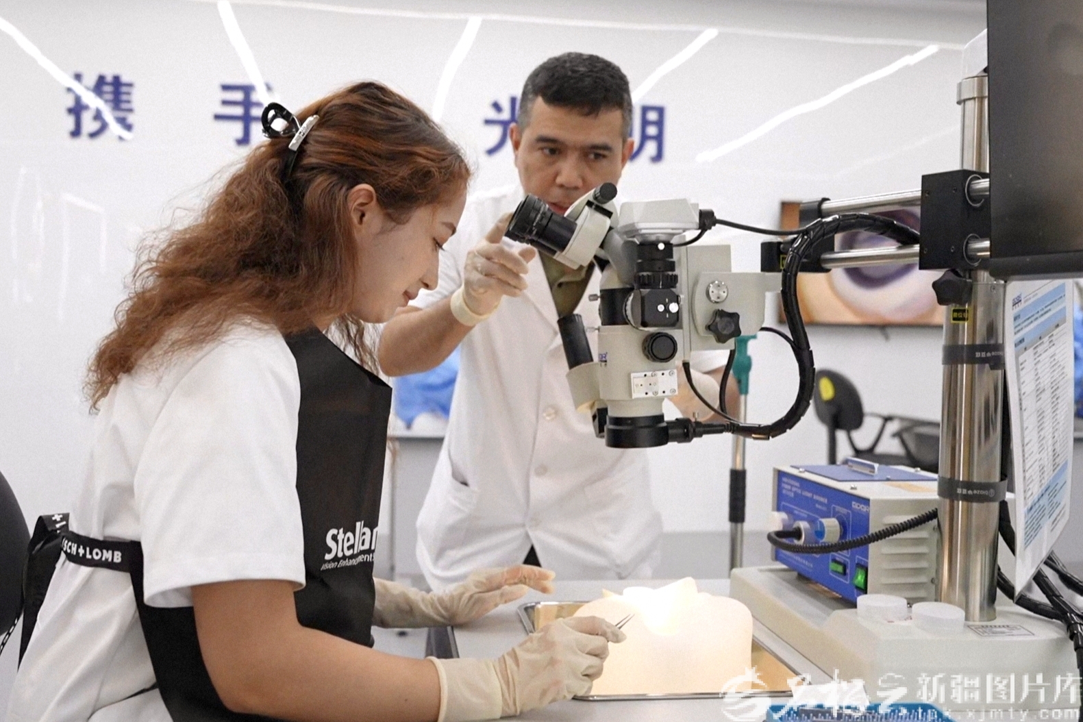 在中山大学附属喀什医院(国家感染性疾病区域医疗中心),学员在老师的指导下进行实操训练。阿里·阿布都吉力力摄
