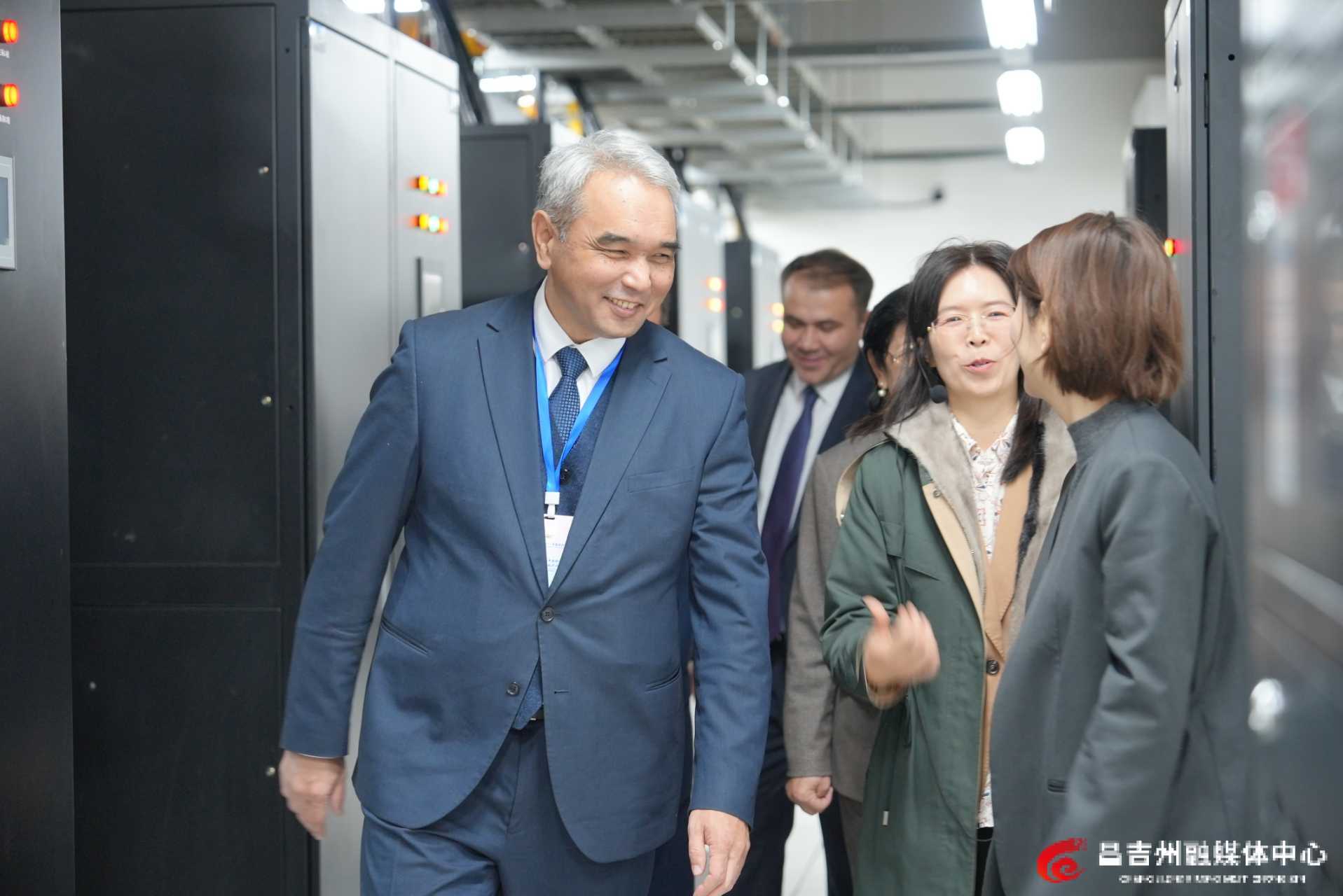 11月7日,参加第十二届中国—中亚合作论坛的哈萨克斯坦乌兹别克斯坦、塔吉克斯坦代表来到昌吉与中国新疆空天地一体化实验室新疆国际融合算力中心参观座谈。 通讯员岳勇超 摄