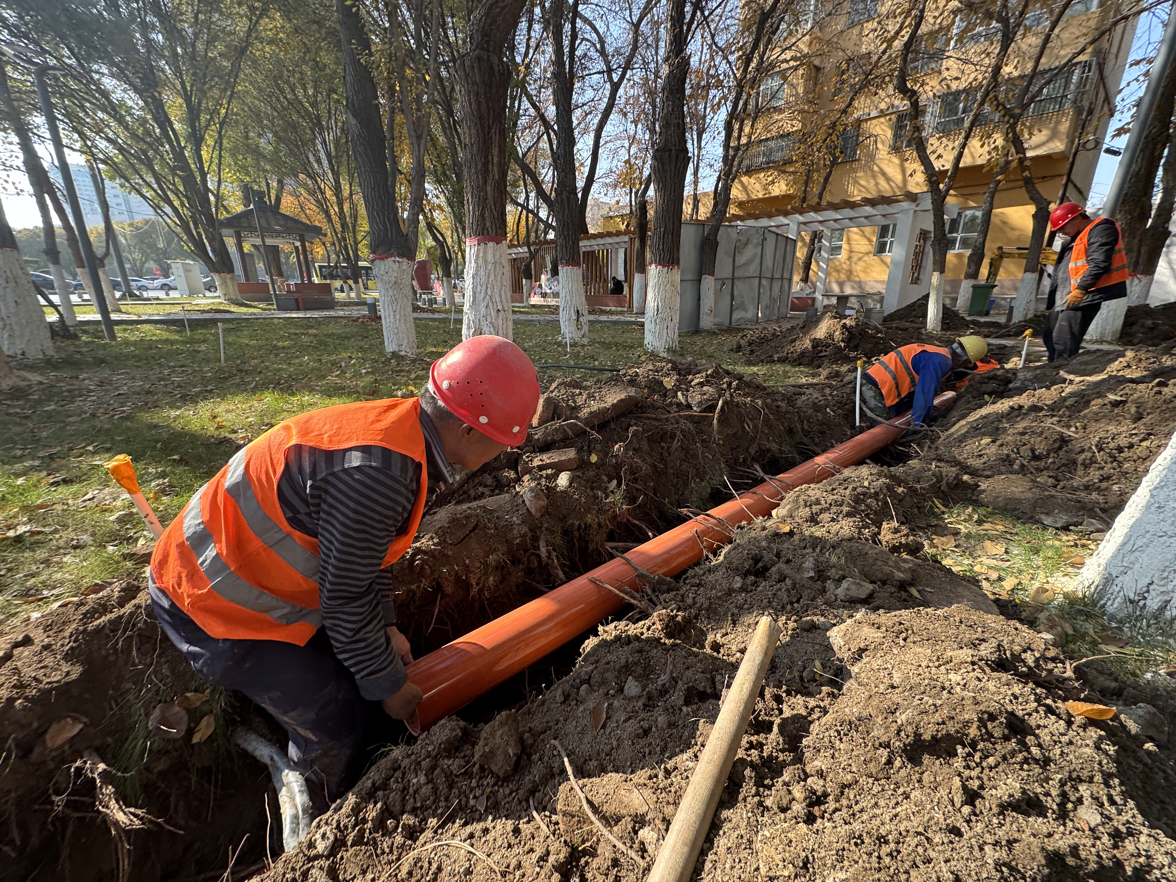 在昌吉市乌伊路与北京路路口的口袋公园内,施工人员正有条不紊地进行电缆管沟开挖、管线埋设作业。