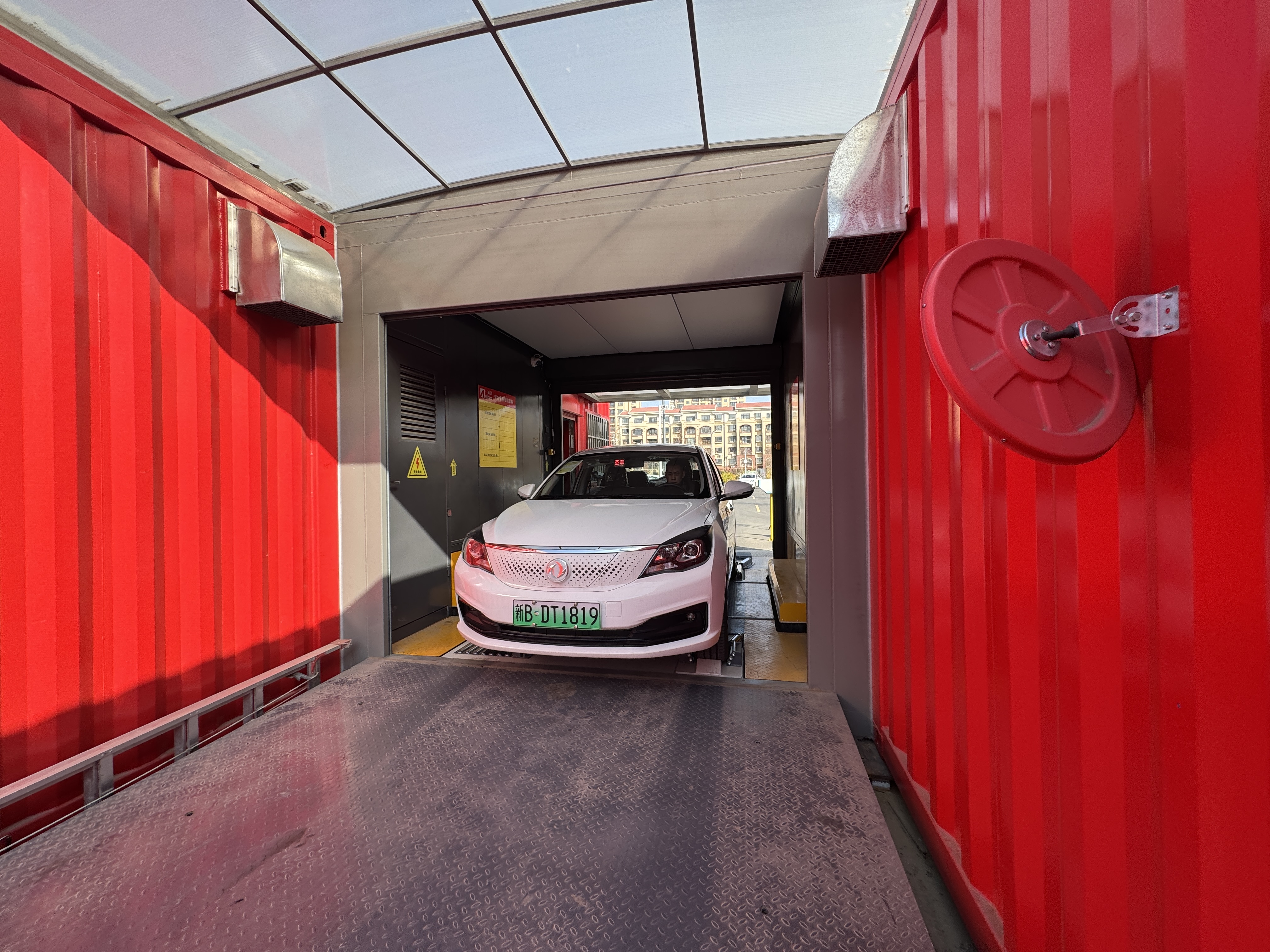 昌吉市红旗西路与兴昌路西北角的 106 充换电站,新能源车换电后离开换电站。