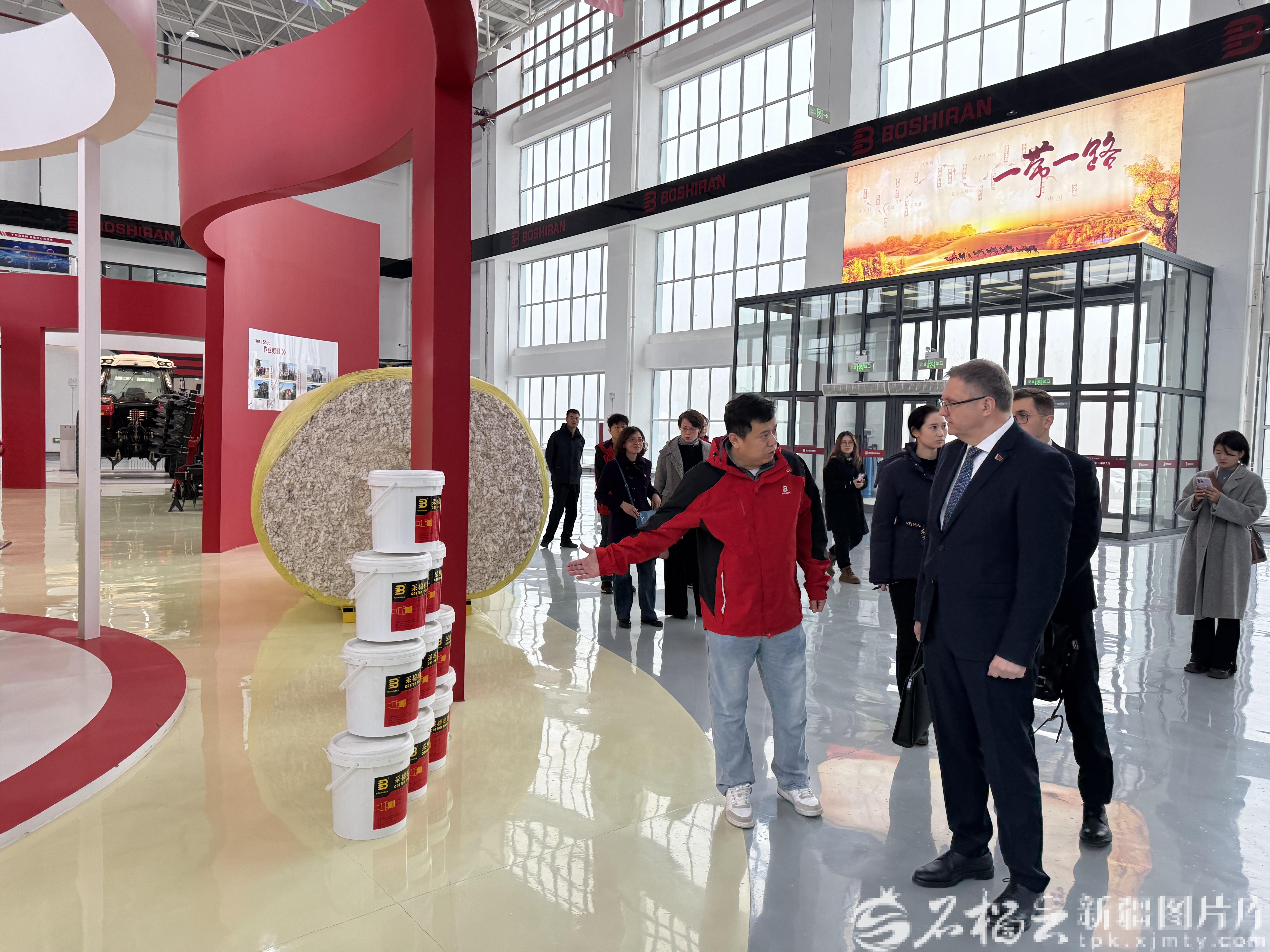 当日下午,代表团还走进新疆中新建农牧有限责任公司及子属天康生物制药实验室、新疆生产建设兵团农业龙头企业,了解农牧产业与生物科技融合发展成果和生产经营情况。切尔维亚科夫表示,白俄罗斯在农产品种植、有机肥料等领域具有显著优势,双方应继续加强交流,深化农业科技与智能装备领域的务实合作,助力两国农业现代化进程。