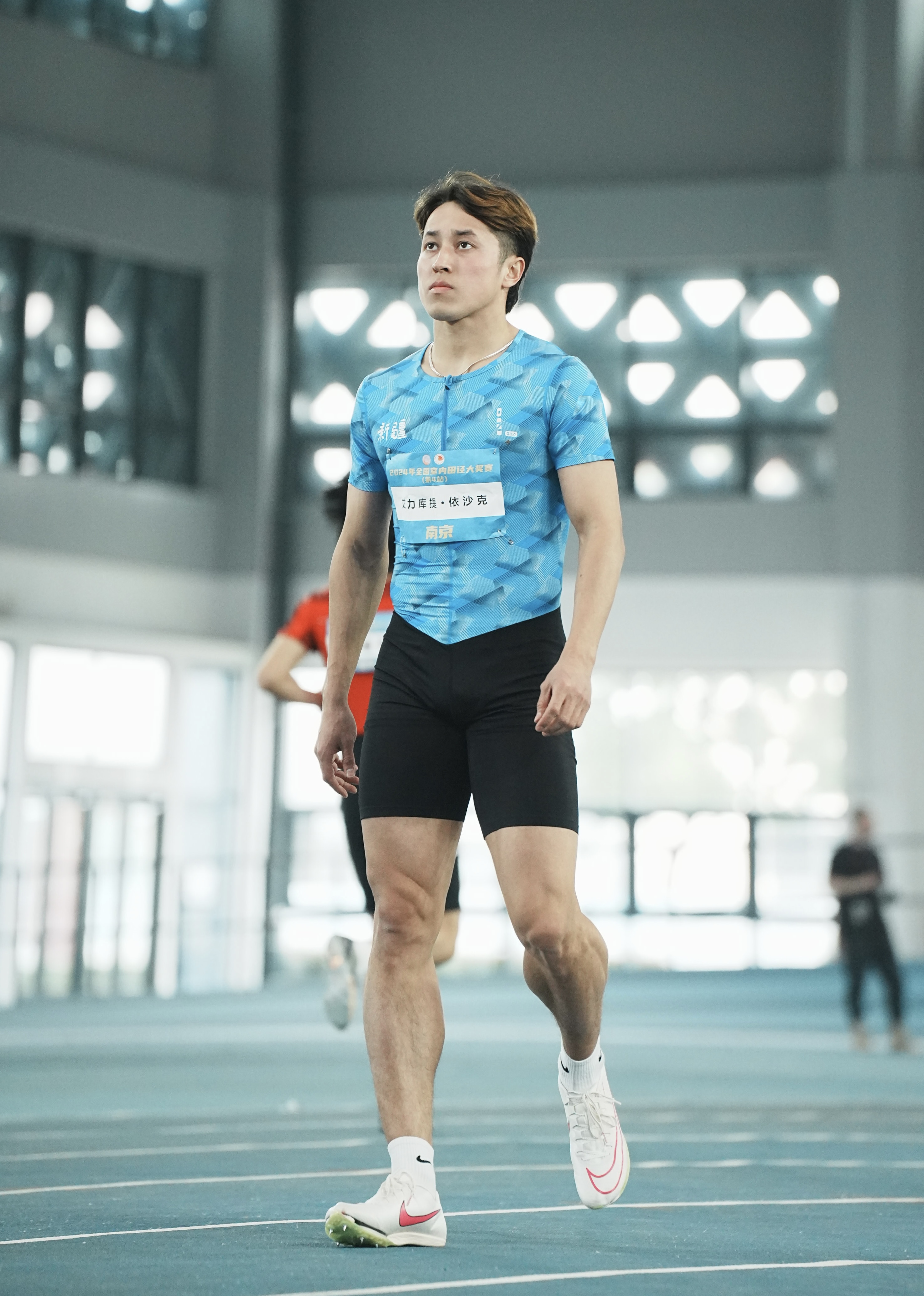 这位来自哈密的小将与田径结缘于初中,在体育老师的启蒙下,他逐渐展现出短跑天赋。2021年,18岁的艾力库提参加全国中学生运动会,以10.44秒的成绩斩获冠军,一举达到健将级标准,那时的他还是高二学生。“从小就经常在各种校园比赛的田径赛场上拿名次,跑步让我更有自信,一比赛我就兴奋。”他说。
