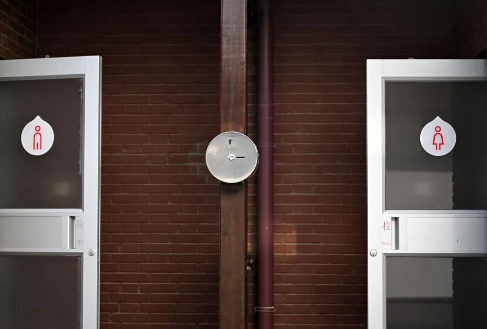 这是11月6日在广西柳州市一处创意园区拍摄的公共卫生间,外墙只有较小的图形用于分辨性别。
