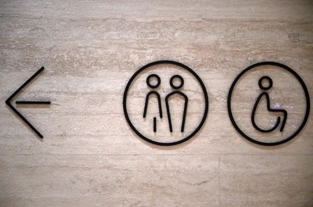 这是11月11日在天津一处景区拍摄的公共卫生间标识。左侧为男厕,右侧为女厕。
