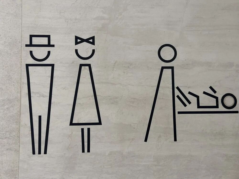 这是10月31日在重庆市两江新区一家商场拍摄的指路牌,上面表示卫生间的图形让人难以理解。