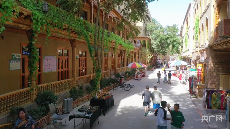 如今,团城特有的“阿依旺”式建筑吸引游客驻足。巷道整洁宽敞,花砖铺地,传统民居焕发新生,院落绿树掩映,宛如花园。