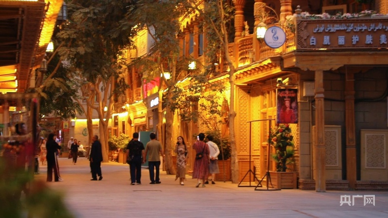 央广网和田11月19日消息 巷道深处,曾经破损不堪的“鸽子巷”已化作历史;眼前是花砖铺地、绿树掩映的“团结之城”,3000条诗词灯饰点亮夜空,也照亮了居民脸上的笑容。