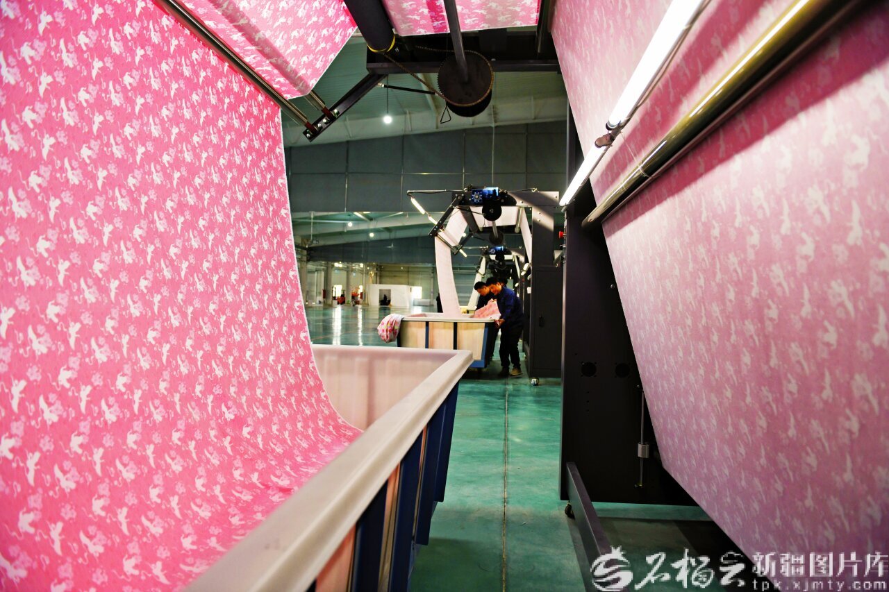 10月9日,位于库尔勒经济技术开发区的新疆德利家纺印染科技有限公司数码印花车间内,工人在作业。石榴云/新疆日报记者 王立华摄
