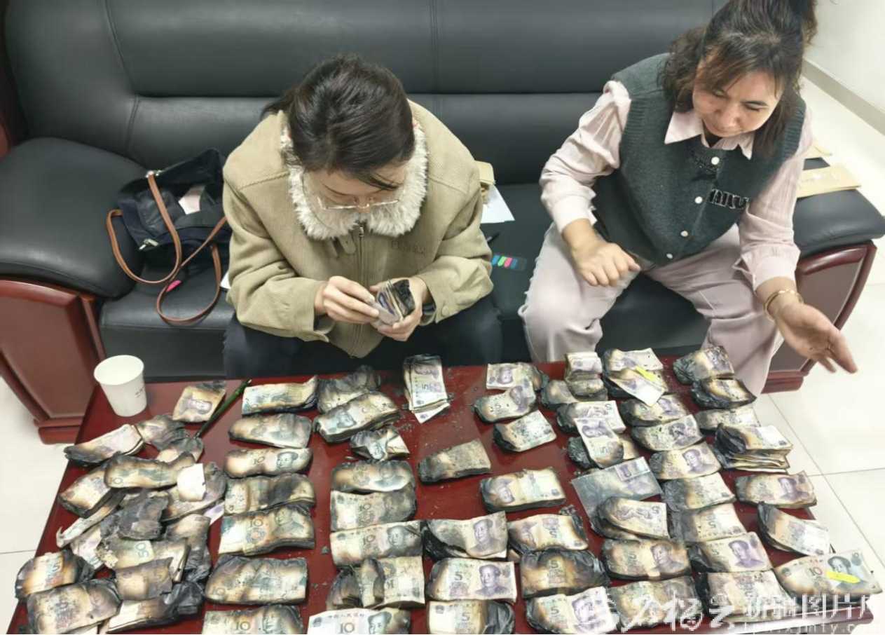 这位个体工商户从事废旧物资回收,一场意外火灾烧毁了他辛苦积攒的人民币现金。随后,他向农业银行哈密分行营业部寻求帮助,想要兑换这些被火烧过的现金。