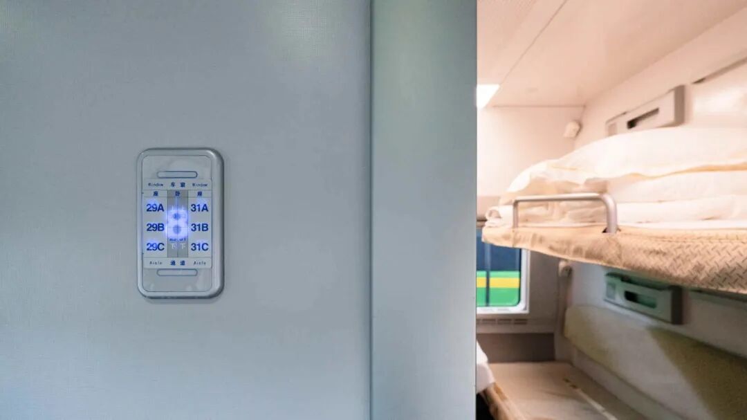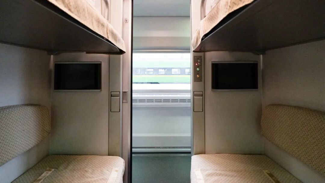 全列定员618人,满足大运量、长距离客运需求。每个铺位均配备独立充电接口与阅读灯,走廊采用感应照明,贴心守护旅客睡眠。