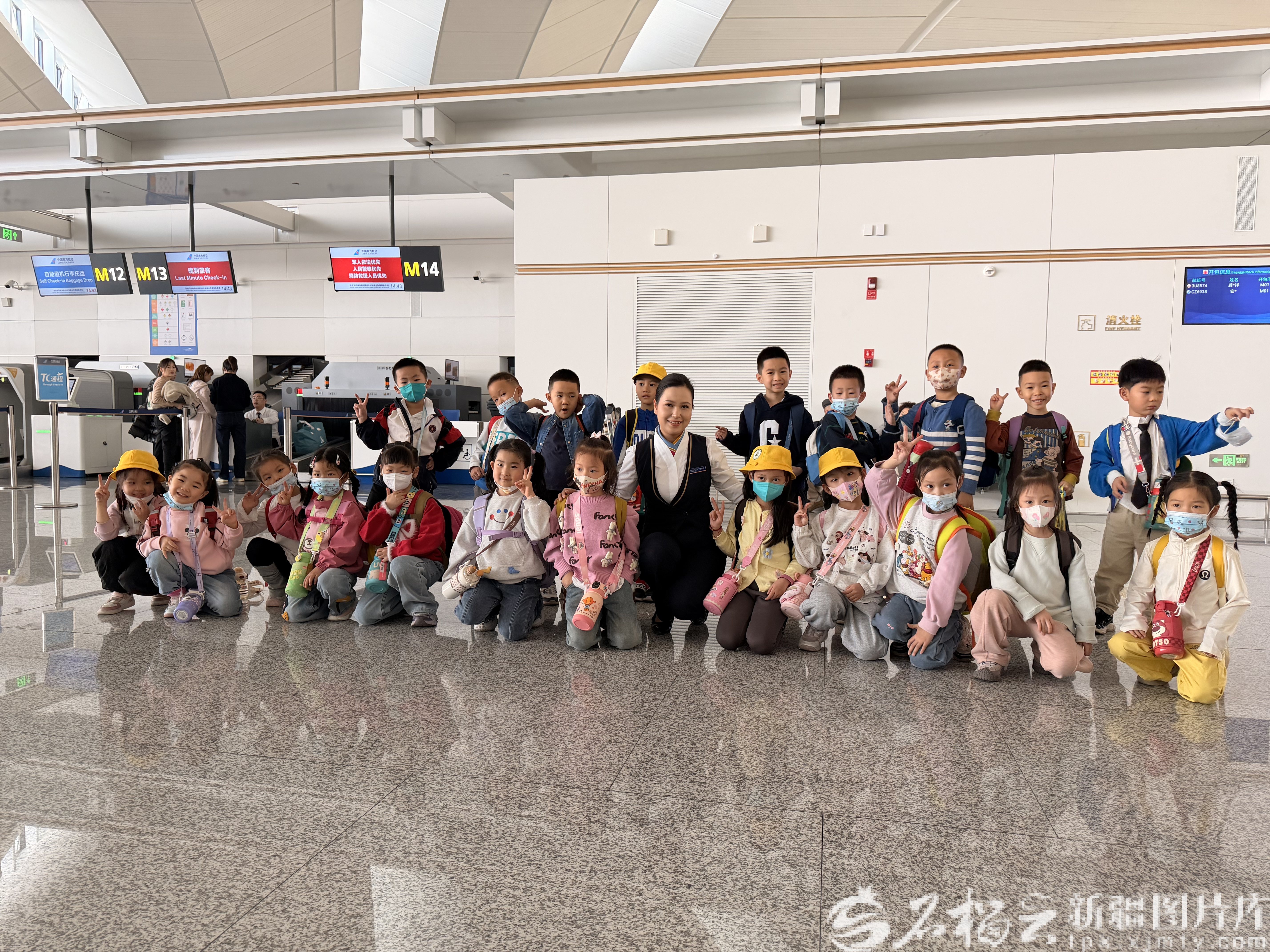 11月20日,在乌鲁木齐天山国际机场,南航工作人员保障儿童研学团出行。骆俊峰摄