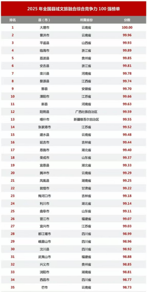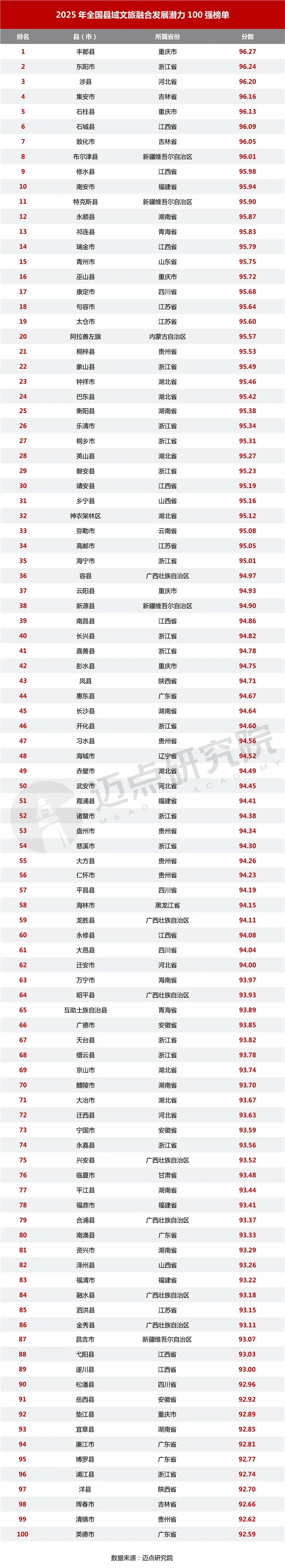 迈点研究院发布“2025年全国县域文旅融合100强榜单”-尊龙凯时国际娱乐