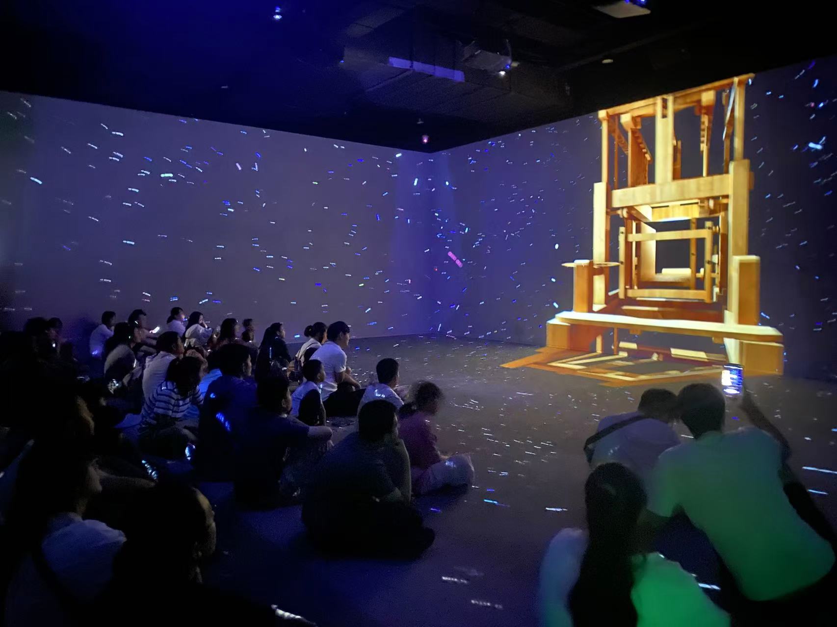 新疆博物馆“中华锦绣——‘五星出东方利中国’锦护臂国宝展”中的全域交互剧场。天山网-新疆日报 记者赵梅摄