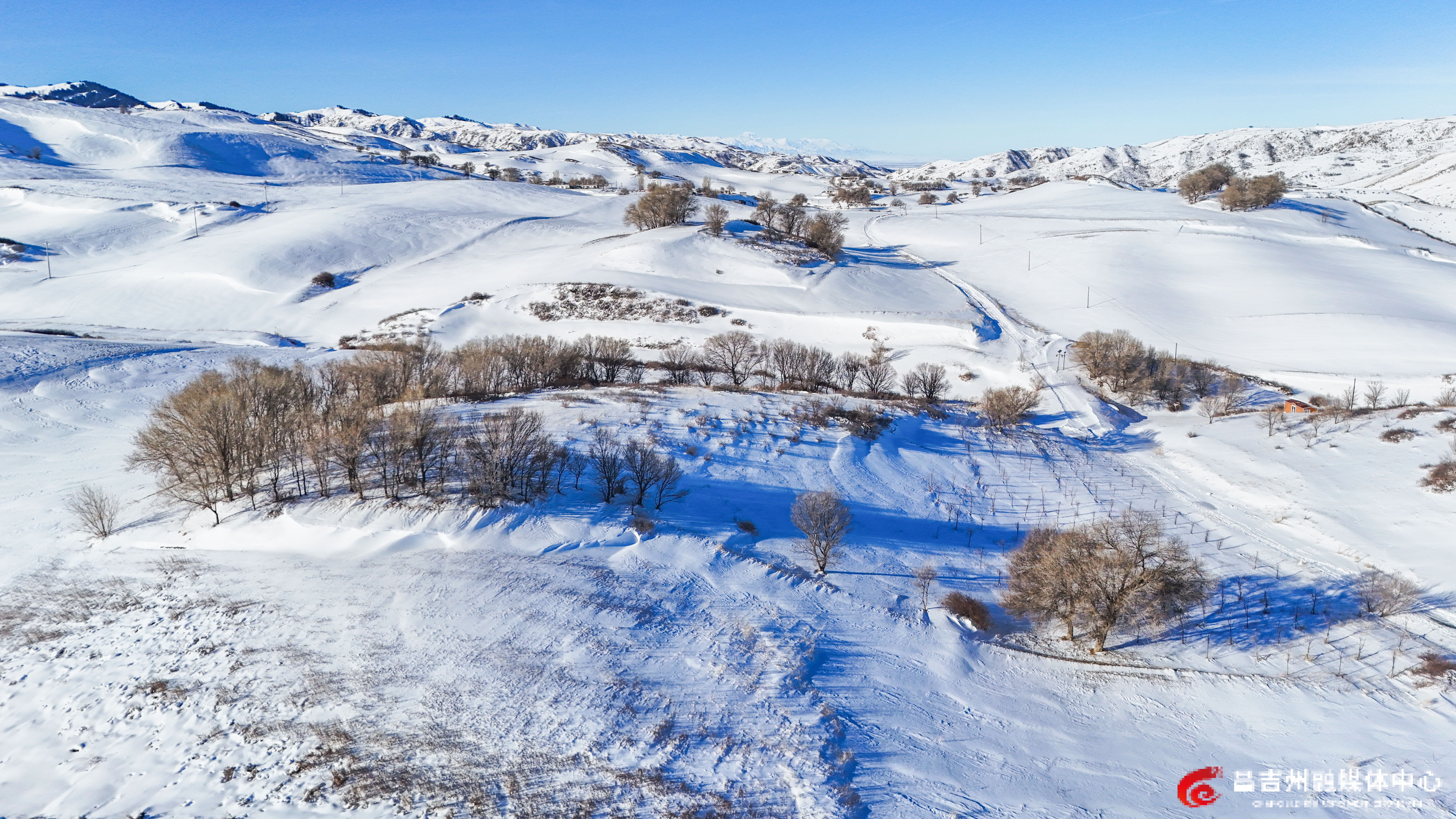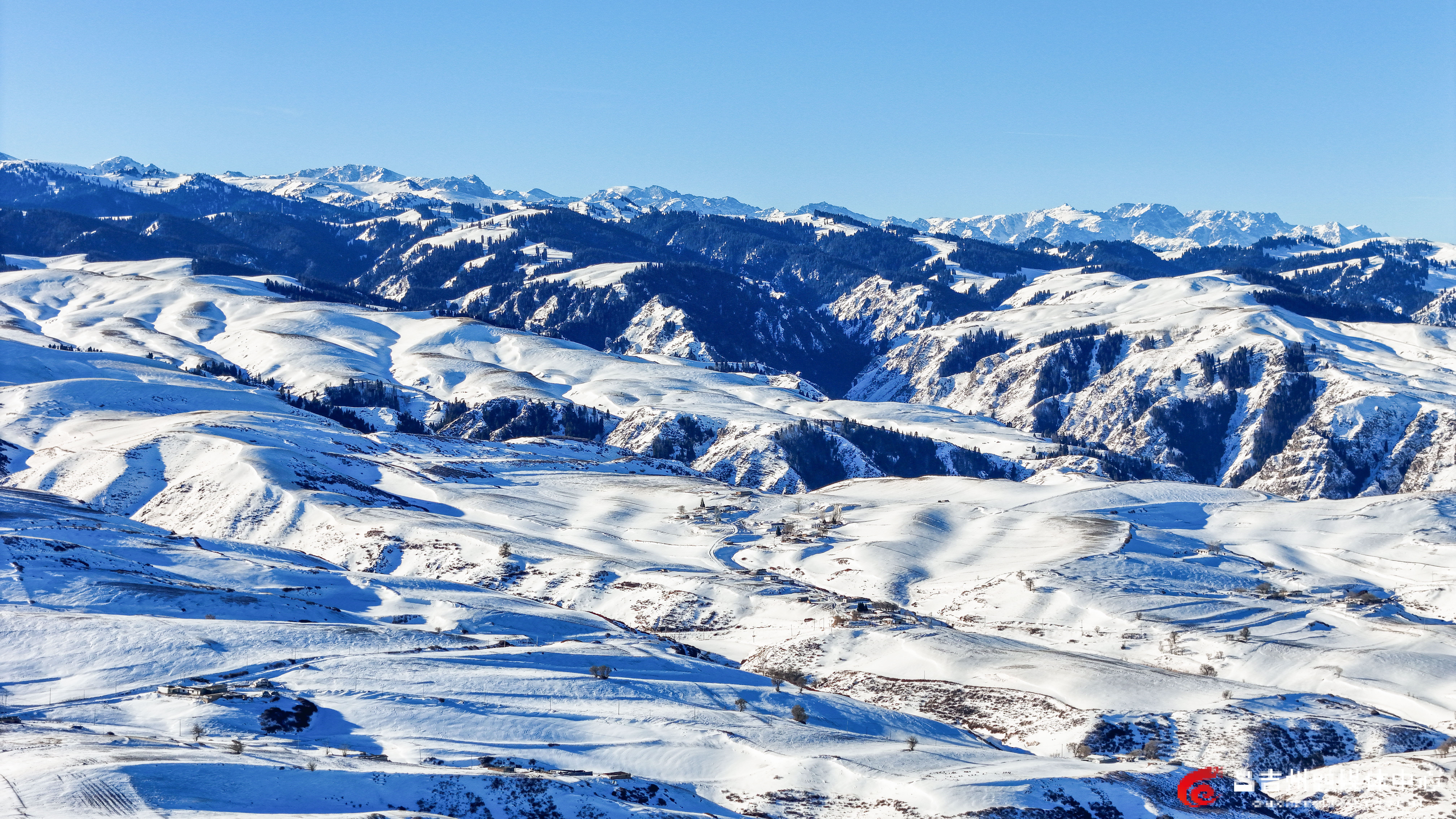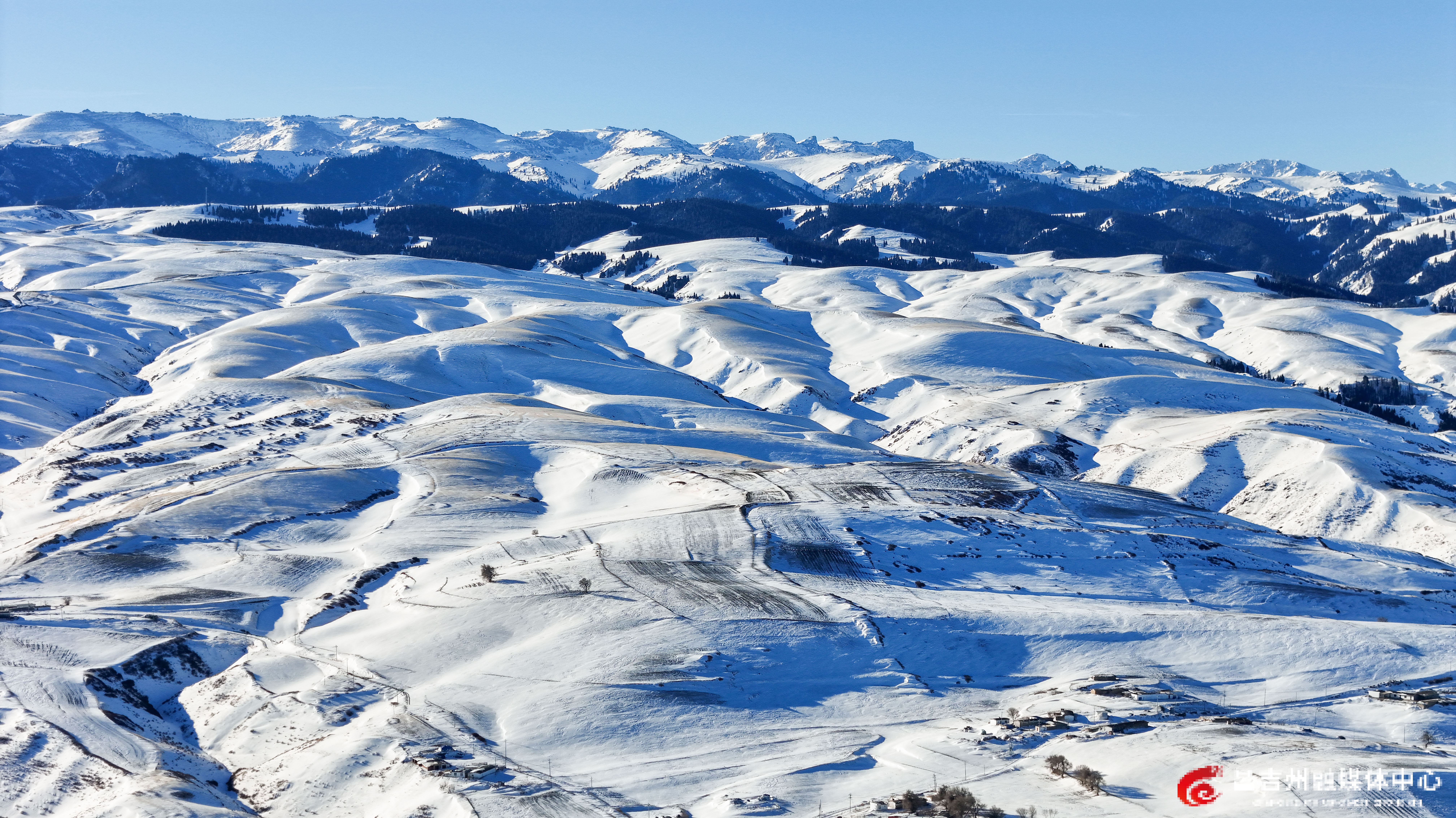 11月26日,木垒哈萨克自治县照壁山乡双湾村雪后初霁,万亩旱田覆盖上新雪,墨绿的松林与洁白的雪原交错,宛如一幅舒展的水墨画卷。