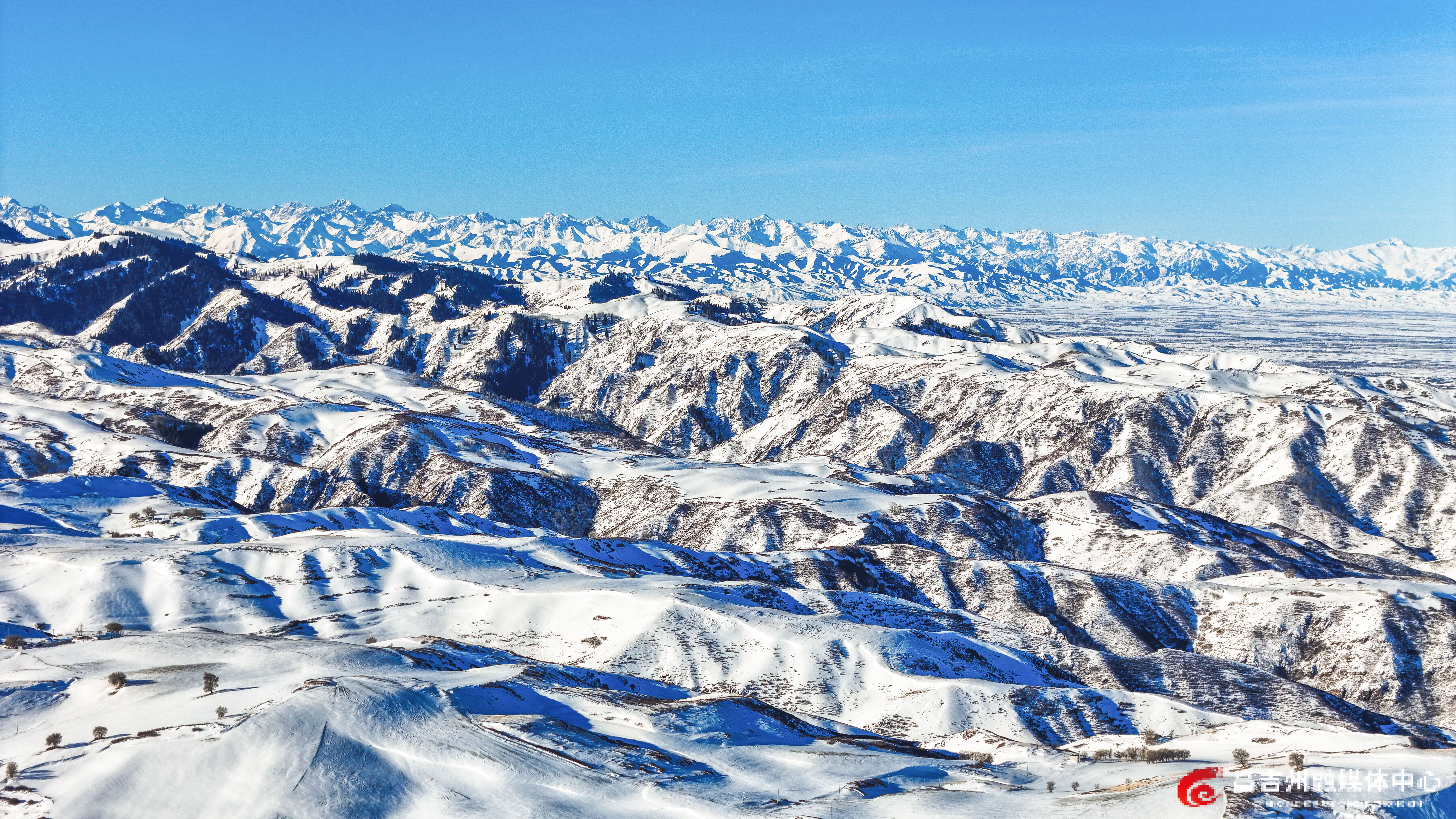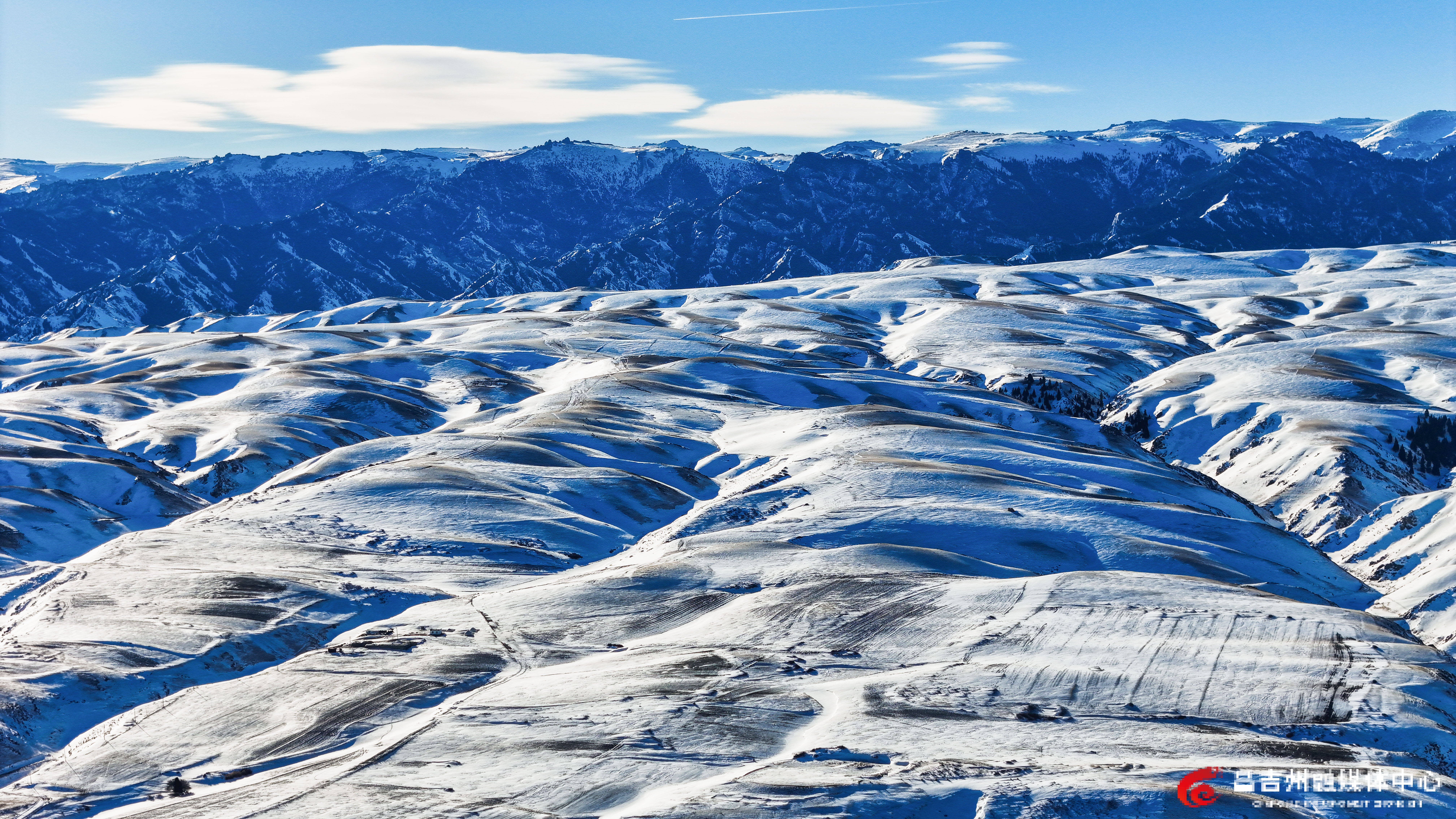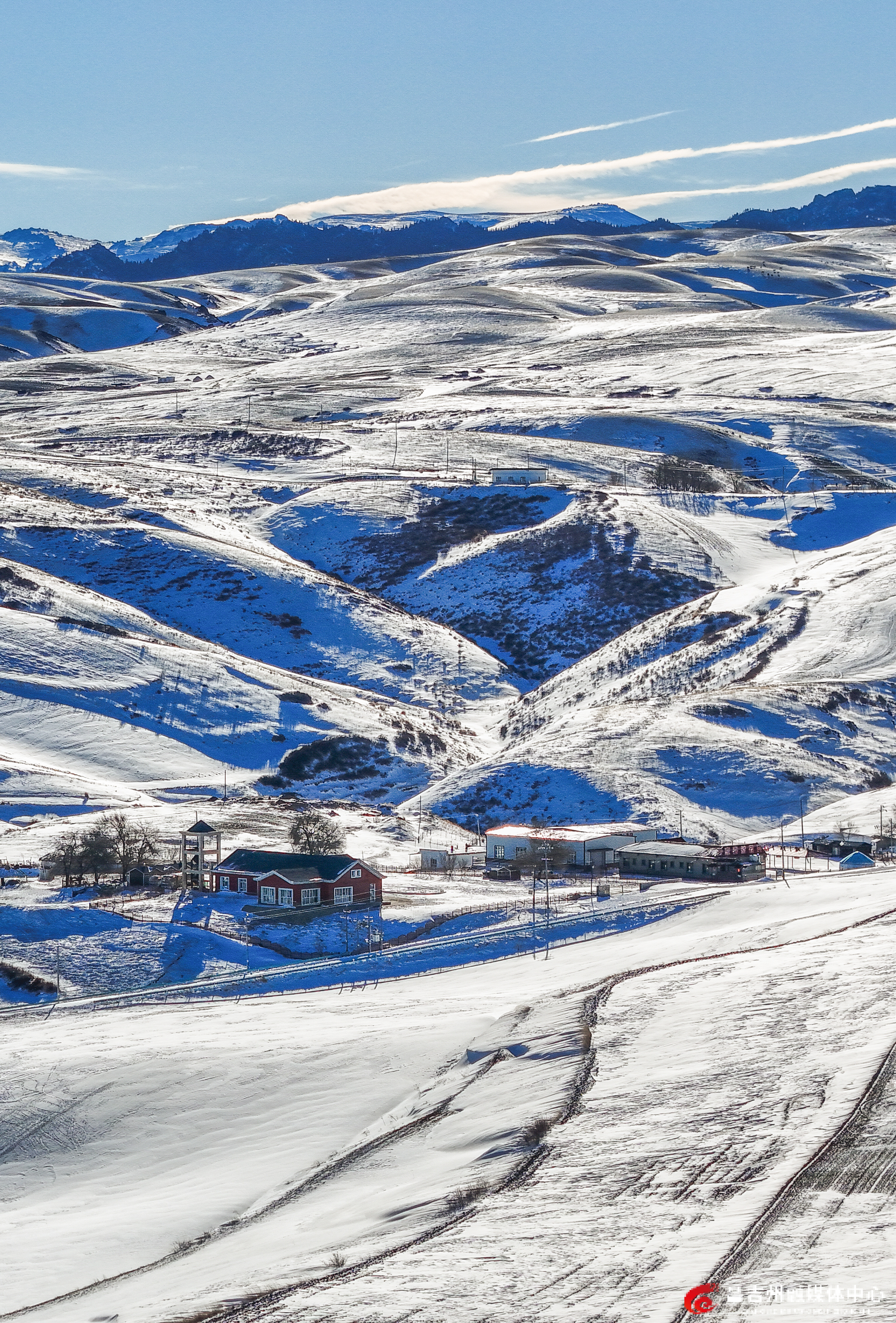 11月26日,木垒哈萨克自治县照壁山乡双湾村雪后初霁,万亩旱田覆盖上新雪,宛如画卷。