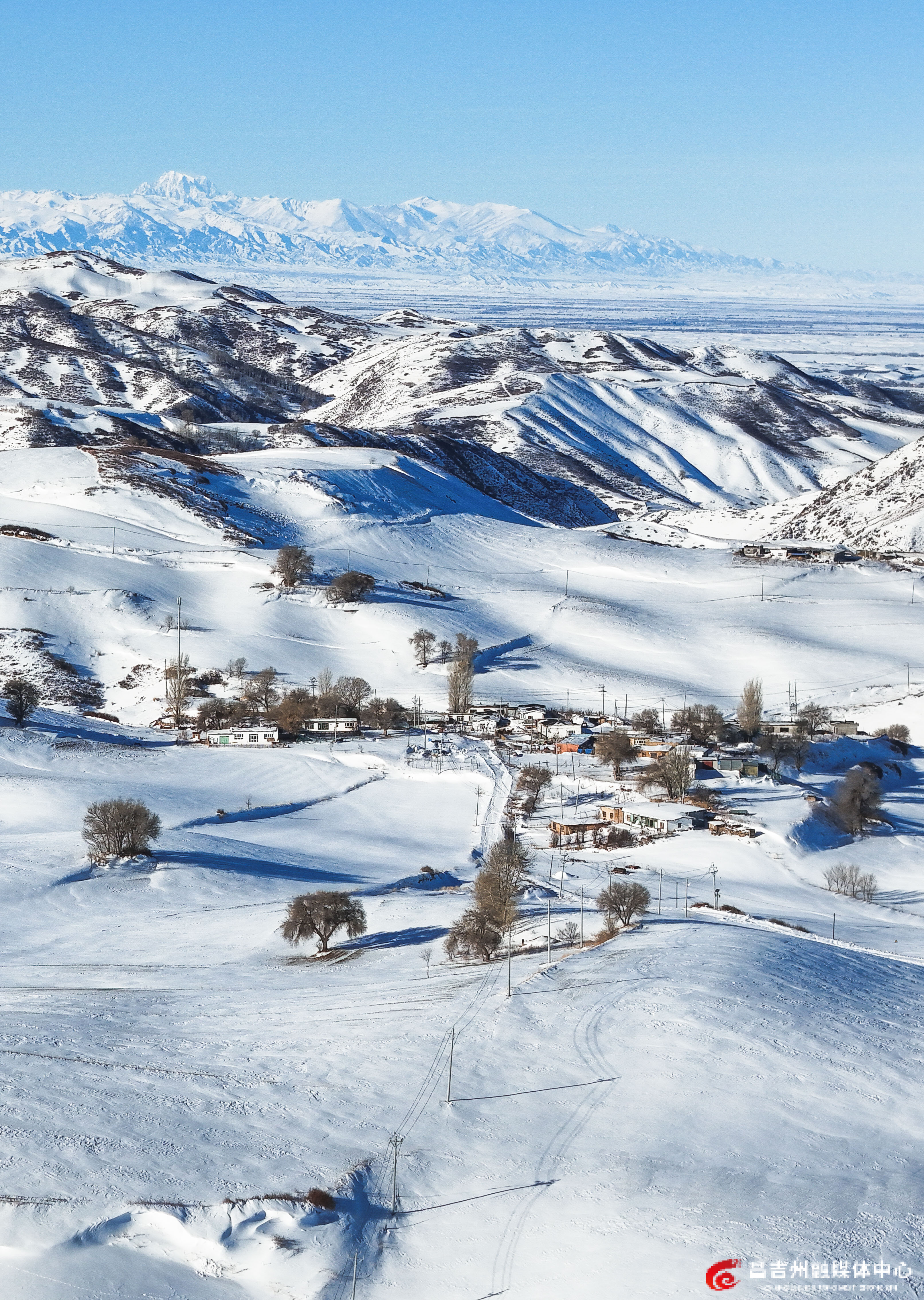 11月26日,木垒哈萨克自治县照壁山乡双湾村雪后初霁,宛如画卷。