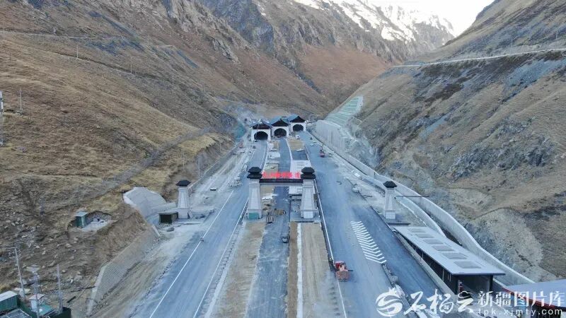 鸟瞰天山胜利隧道进口端外观(资料图片)。柳新鹏摄