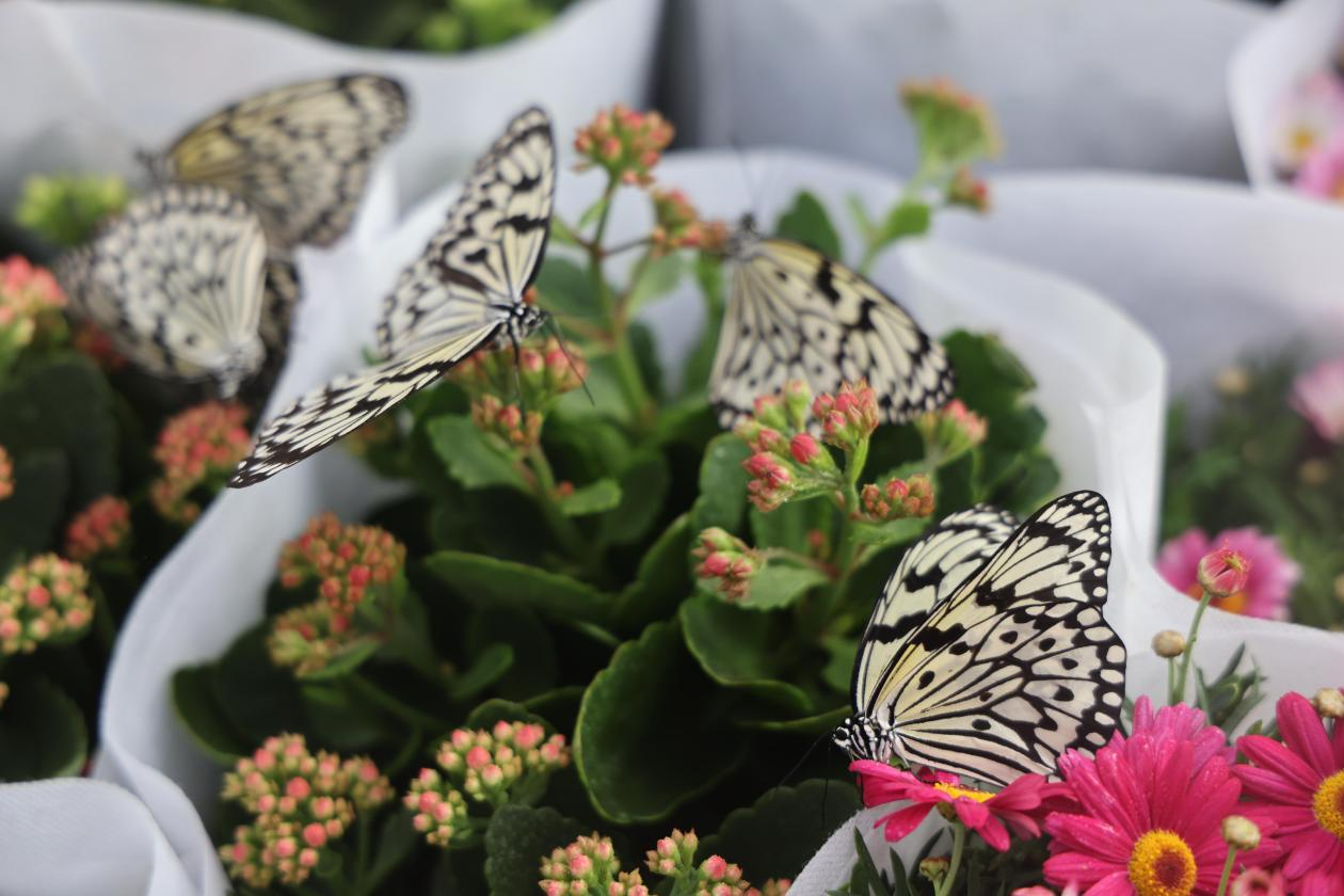 在蝴蝶馆温室内,工作人员正在小心放出蝴蝶。叶尔克西 摄