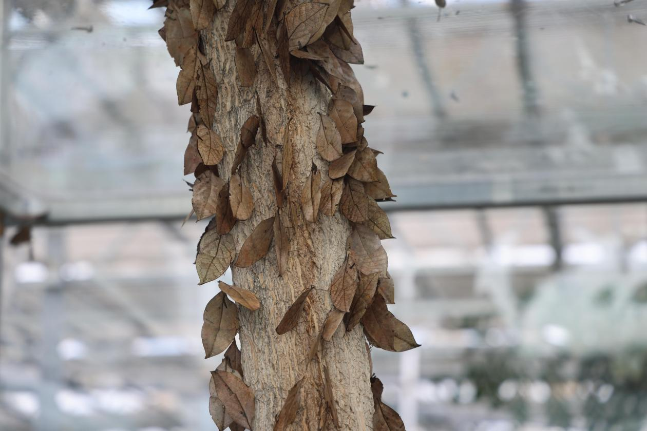 在蝴蝶馆温室内,几十只枯叶蛱蝶正在停落在树干上歇息。袁琪浩 摄