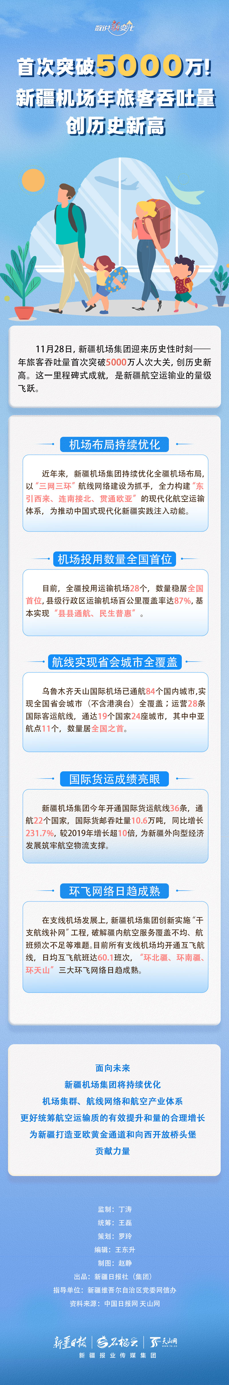 a a. a-11月28日,新疆机场年旅客吞吐量首次突破5000万人次大关,创历史新高。这一里程碑式成就是如何取得的?新疆机场集团做了哪些努力?今天的《数说“新”变化》为你解读。