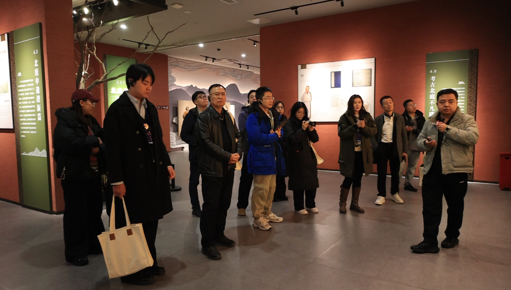 采访团成员在丝绸之路北庭故城遗址博物馆内参观,认真聆听讲解。马凯雄 摄