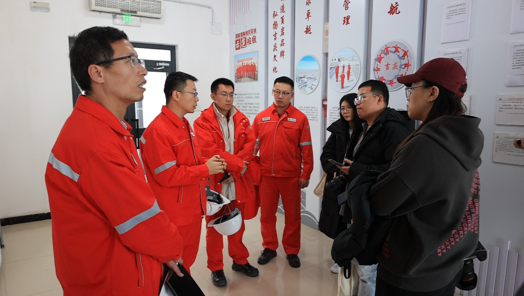 采访团记者采访吉庆油田工作人员。马凯雄摄