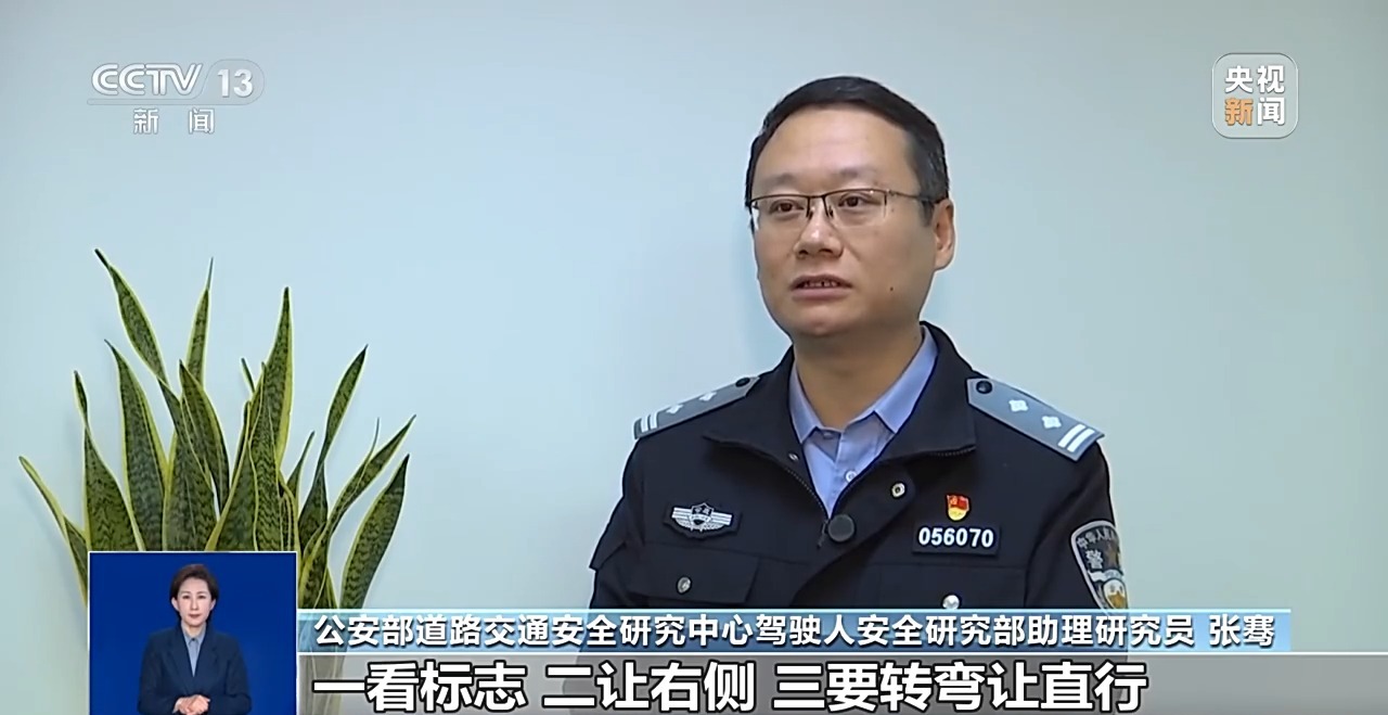 公安部道路交通安全研究中心驾驶人安全研究部助理研究员 张骞:如果要用一句话来概括,我们通过没有灯控的路口时,一看标志,二让右侧,三要转弯让直行,四要右转让左转,这样就能在绝大多数路口做出正确的判断。