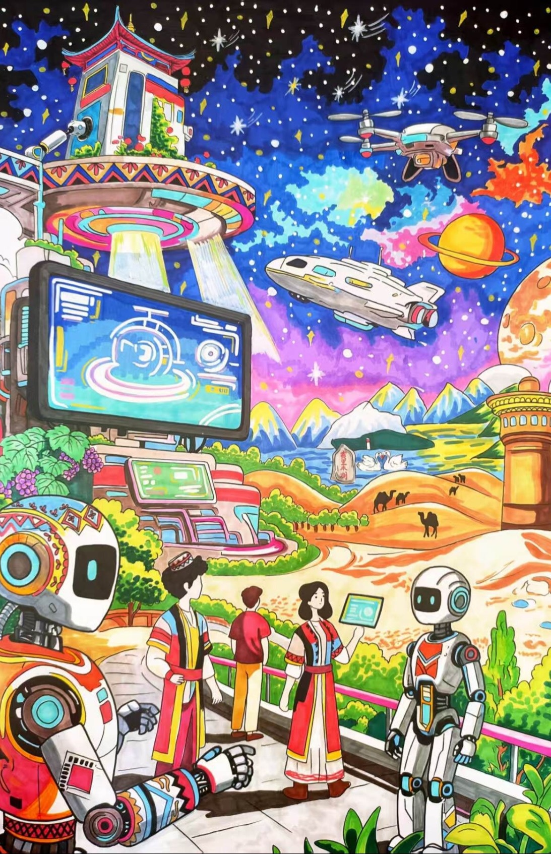 活动虽已收官,但童心绘就的色彩永不褪却。愿这次绘画之旅,能在孩子们心中种下美的种子,伴随他们继续用清澈的眼睛发现新疆的壮丽,用纯真的笔触记录时代的辉煌。