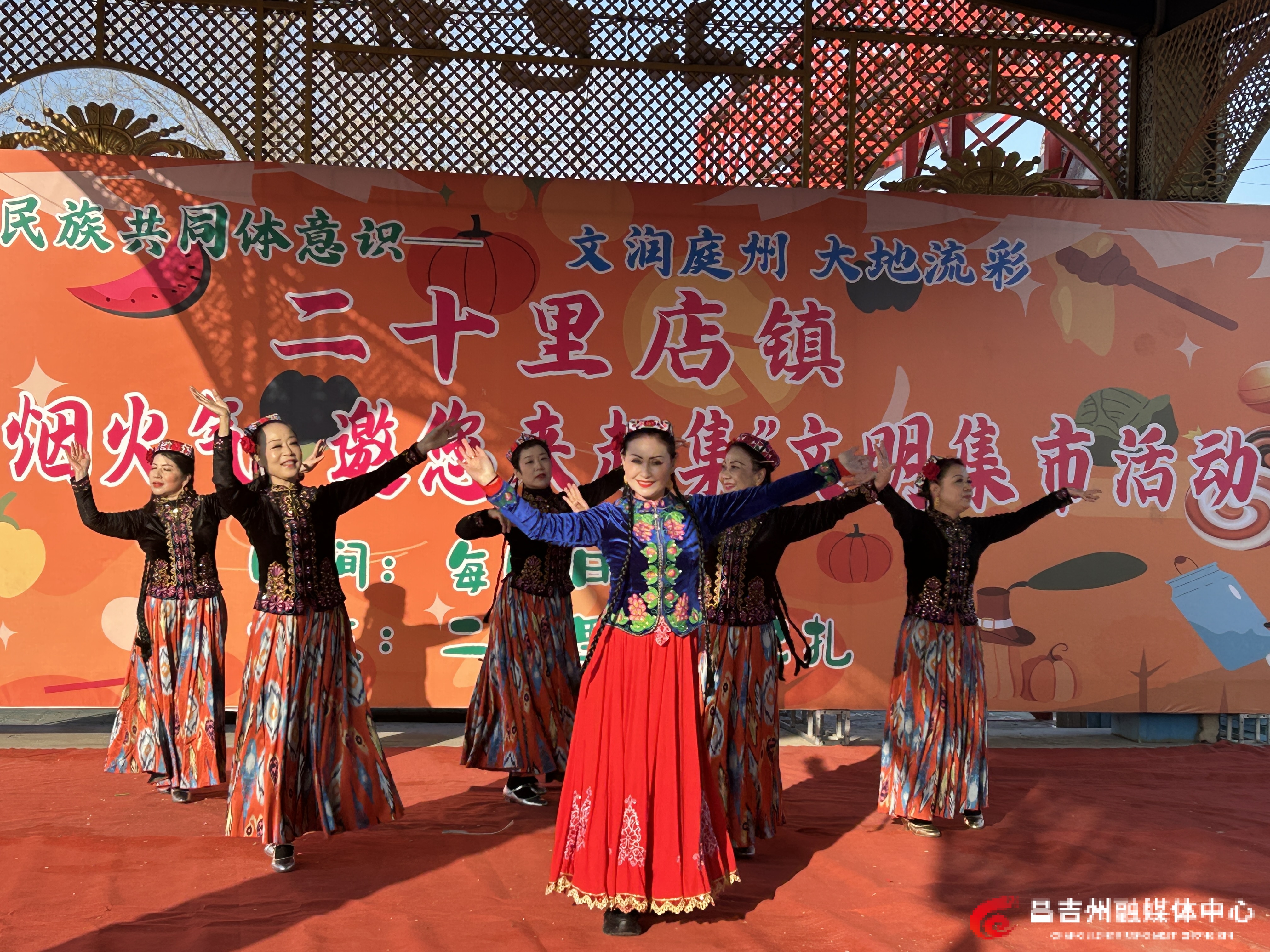 初冬时节,寒风料峭。11月30日上午,呼图壁县二十里店镇二十里店村的小巴扎文明集市热闹开市,各族群众逛集市、品美食、看表演、话家常,乐享冬日闲暇时光。