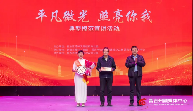 a a. a-丝路昌吉/昌吉州融媒体中心讯(实习记者 杨晓溢报道)汇聚平凡微光,照亮文明之路。12月3日,由自治区精神文明建设办公室主办、昌吉州精神文明建设办公室承办的“平凡微光 照亮你我”典型模范宣讲活动在昌吉州融媒体中心800平方米演播厅举行。昌吉州各级道德模范、身边好人等模范代表和基层干部群众代表齐聚一堂,共同聆听身边榜样的感人故事,感受道德的力量与温暖。