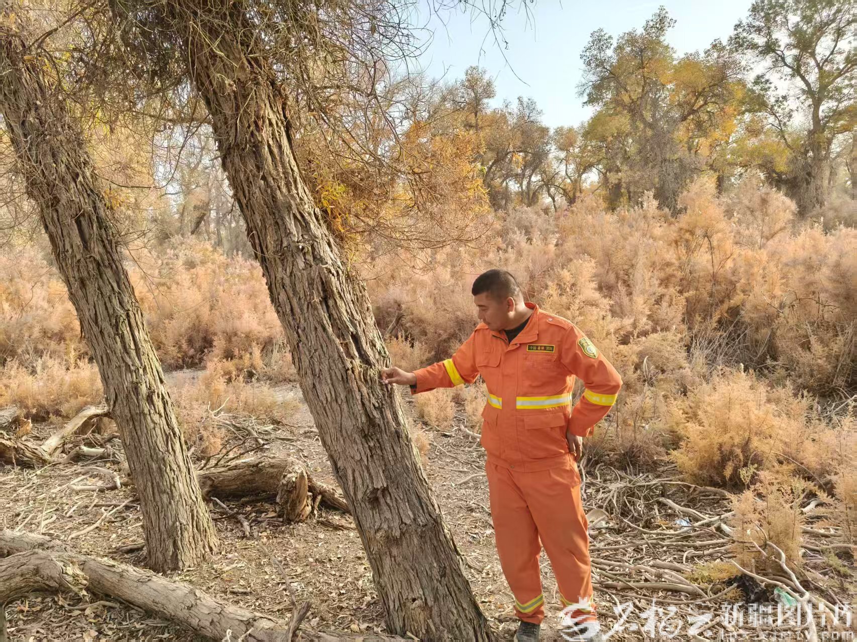 冬春季节,风沙肆虐,依布拉依木和同事一次次爬上30米高的瞭望塔观察火情,一趟趟骑摩托车深入胡杨林巡查;夏秋季节,高温相伴,他和同事在巡查中向游客和牧羊人宣传防火安全知识,用坎土曼开挖引水渠。很多地方因沙子松软无法骑摩托车,他们就步行。
