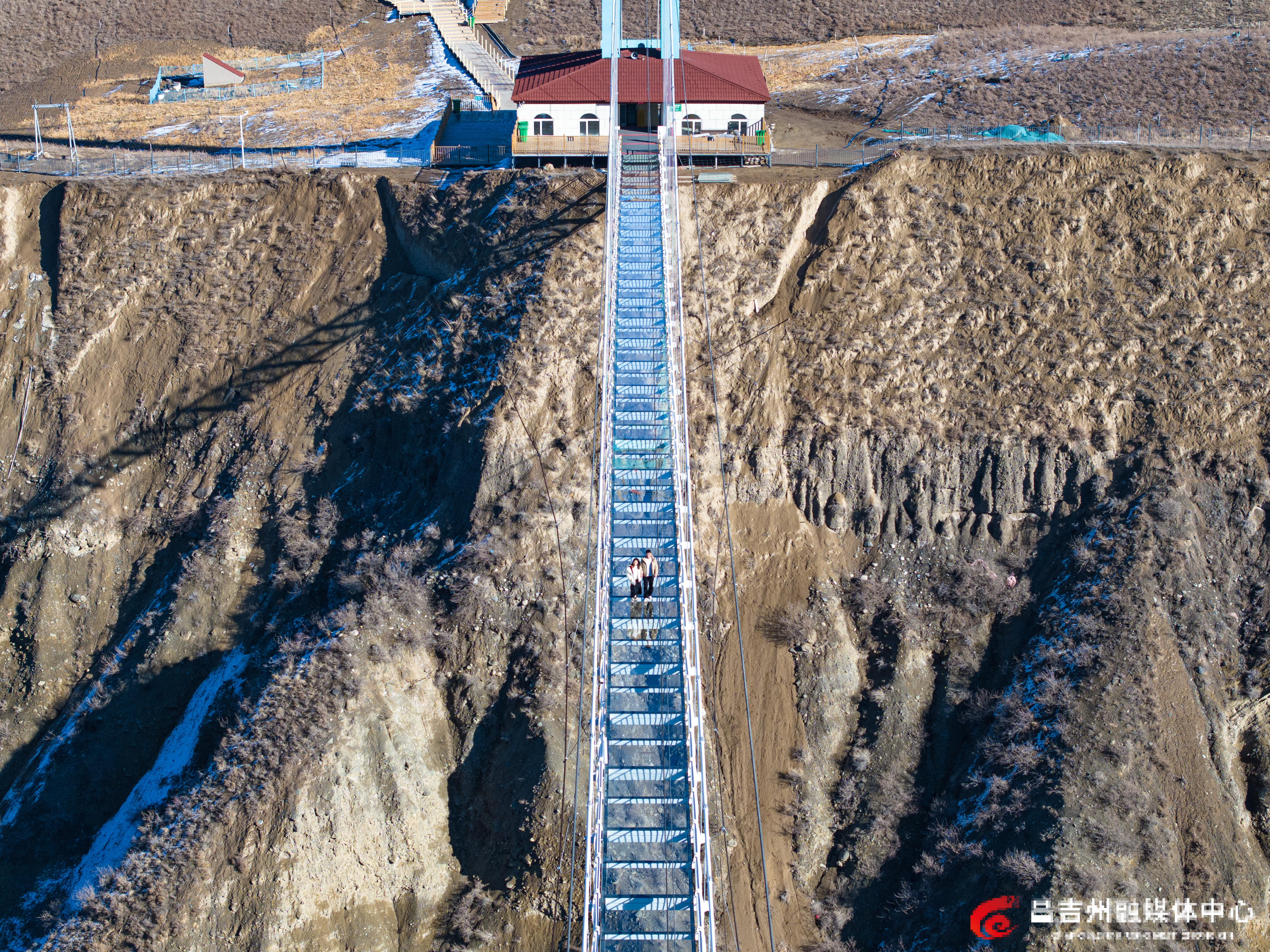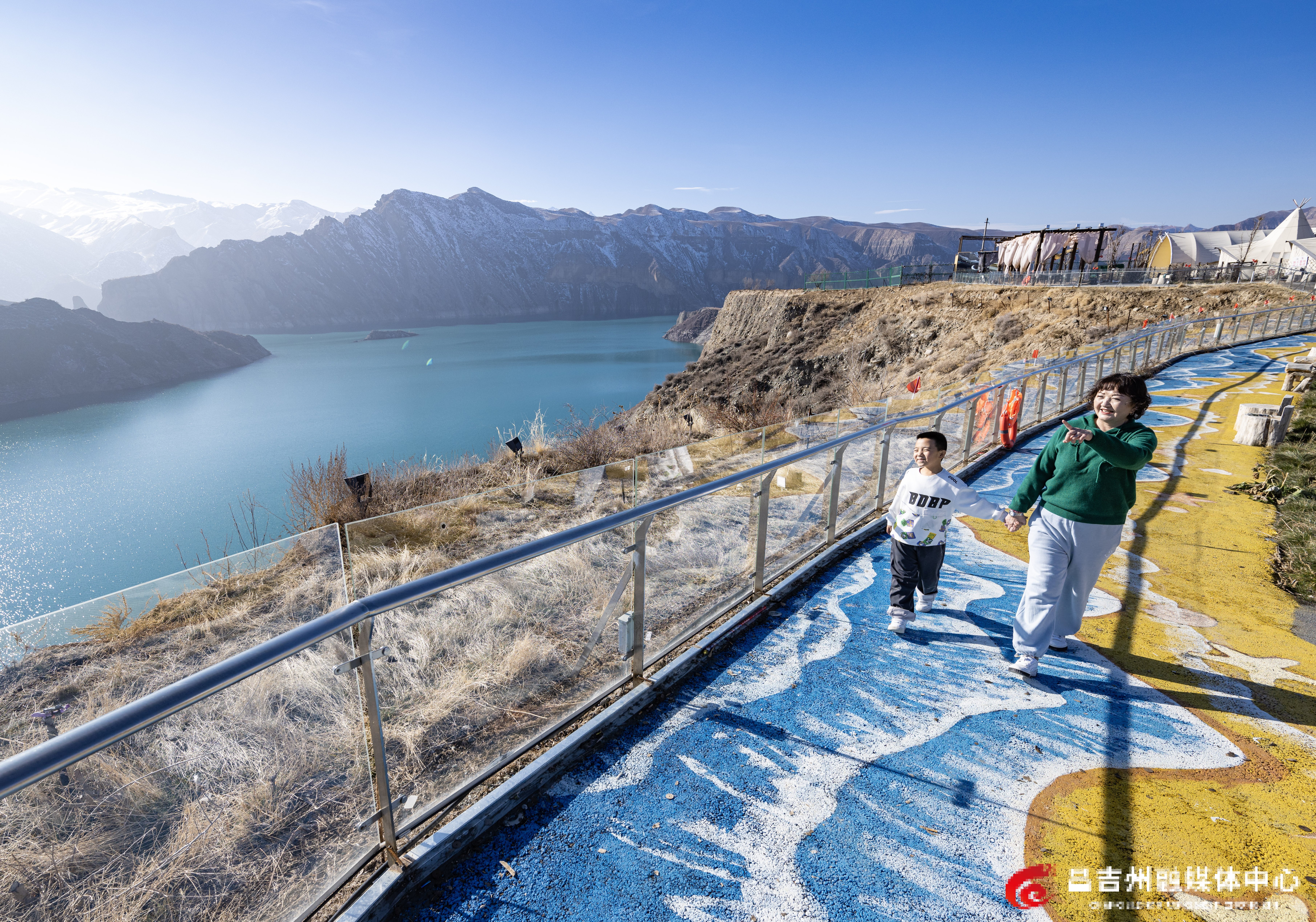 12月4日,游客在玛纳斯县肯斯瓦特湖的玻璃栈道上游览。