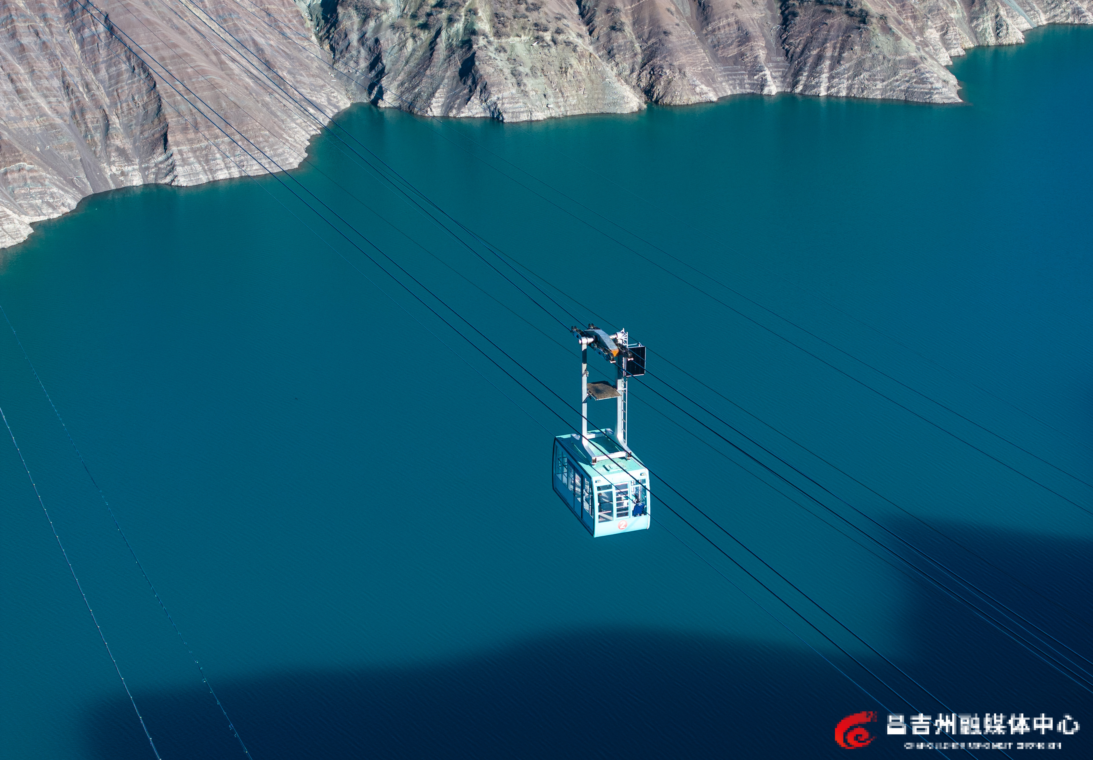12月4日,游客乘坐缆车在玛纳斯县肯斯瓦特湖游览。