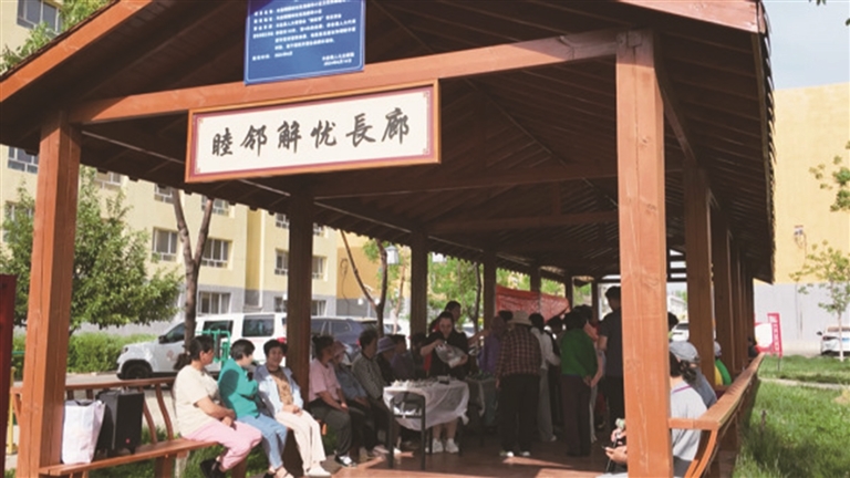 在木垒镇美康华小区,“睦邻解忧长廊”成了老年人的“欢乐天地”,老人们常聚在这里下棋、聊天。2023年末,木垒县各级人大代表通过实地察看、走访群众,广泛收集民生项目意见建议。根据群众诉求和小区实际,他们及时将社区缺乏活动场所的问题反馈给木垒县人大常委会。经木垒县人大常委会调研,该诉求被列入“微实事”项目,决定修建“解忧长廊”。2024年6月,“睦邻解忧长廊”正式投用。如今,这里不仅是人大代表收集社情民意的工作站,还是小区居民的说事议事厅、惠民政策传播窗口和社区“零距离”服务居民的平台。