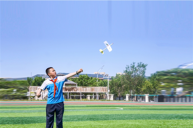 5月15日,昌吉市第四小学学生参加一级橡筋动力模型滑翔机留空竞时赛。□杨 斌摄