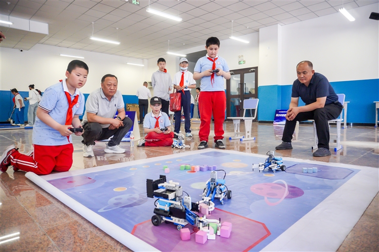 5月15日,昌吉市第八小学学生正在参加机器人ai挑战比赛。□杨 斌摄