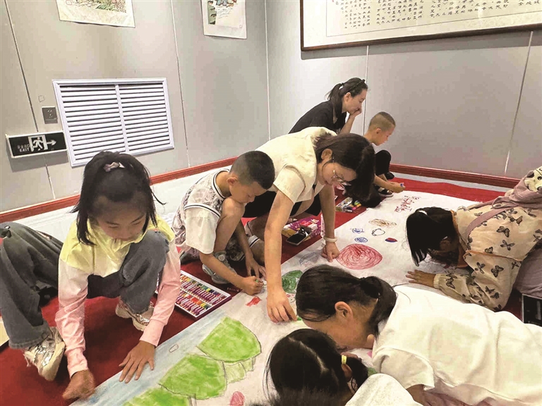 5月25日,昌吉市“快乐六一 童趣无限”少儿大地绘画展上,家长和孩子共同作画。□刘 华摄