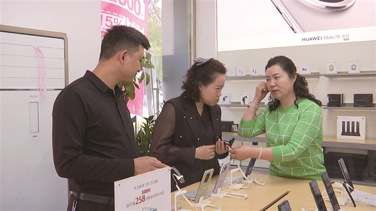 “自国家推出以旧换新政策以来,门店销量同比增长30%。目前,消费者购买6000元以下的手机、平板、智能手表等产品,可享受15%的政府补贴,单笔最高补贴500元,优惠力度很大。”华为授权体验店店长章芬介绍。