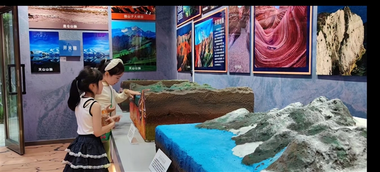 5月1日,小朋友在新疆农业博览园科普馆参观。 记者 刘昊清摄