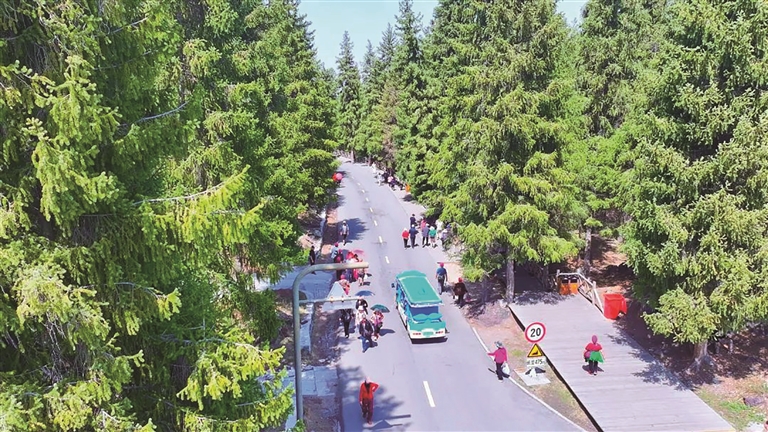 天山天池景区通过完善设施、提升服务、志愿助力以及联动周边乡村发展等多项举措,不断提升旅游服务质量,为游客打造了一个安全、舒适、便捷、优质的旅游环境。