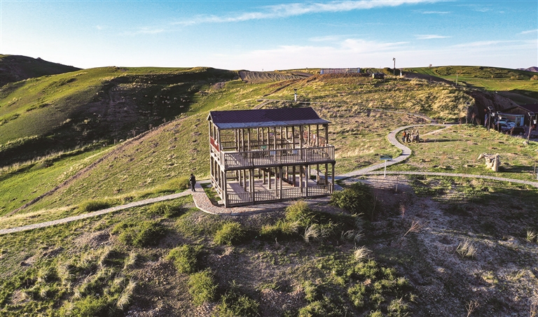 无人机镜头下的木垒县照壁山乡云端观景台。记者 常谊谊摄
