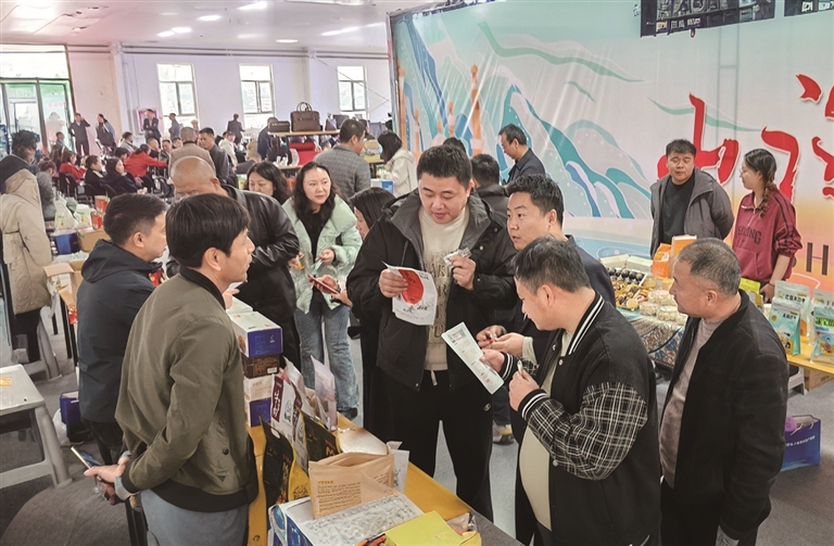 3月24日,在呼图壁县首届“山海协作 电商赋能”交流培训会上,客商在对接选品和电商协作。□中国昌吉网记者 岳文玲摄