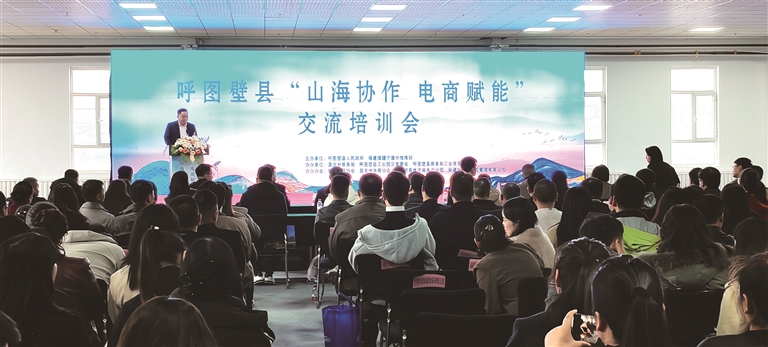 3月24日,在呼图壁电子商务科技产业园,该县首届“山海协作 电商赋能”交流培训会拉开帷幕。□中国昌吉网记者 岳文玲摄