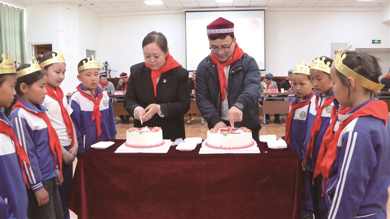 近日,福建省宁德市团干部及青年企业家与呼图壁县雀尔沟镇宁德小学学生共同举办“共青团爱心生日会”。□吾拉恩·巴合提努尔摄